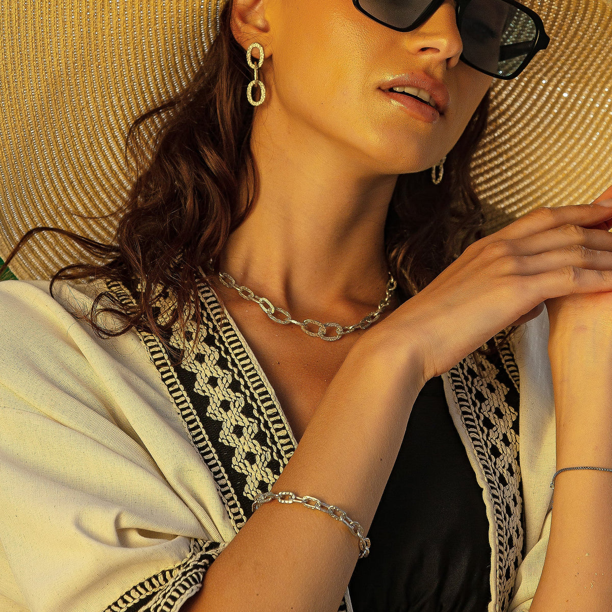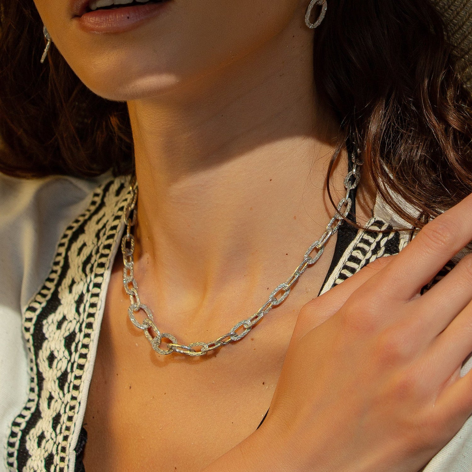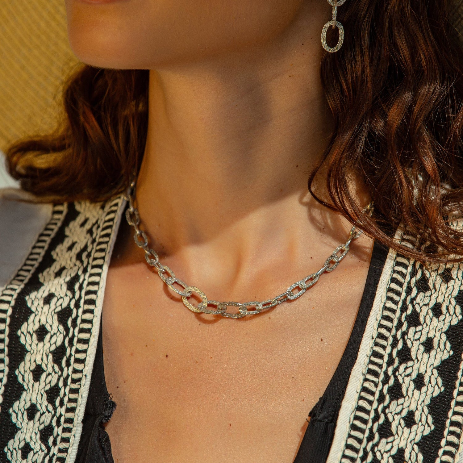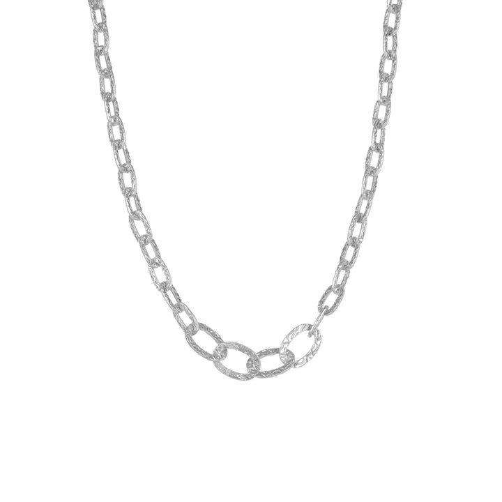 This necklace is made from high-quality silver and features unique textured links.
