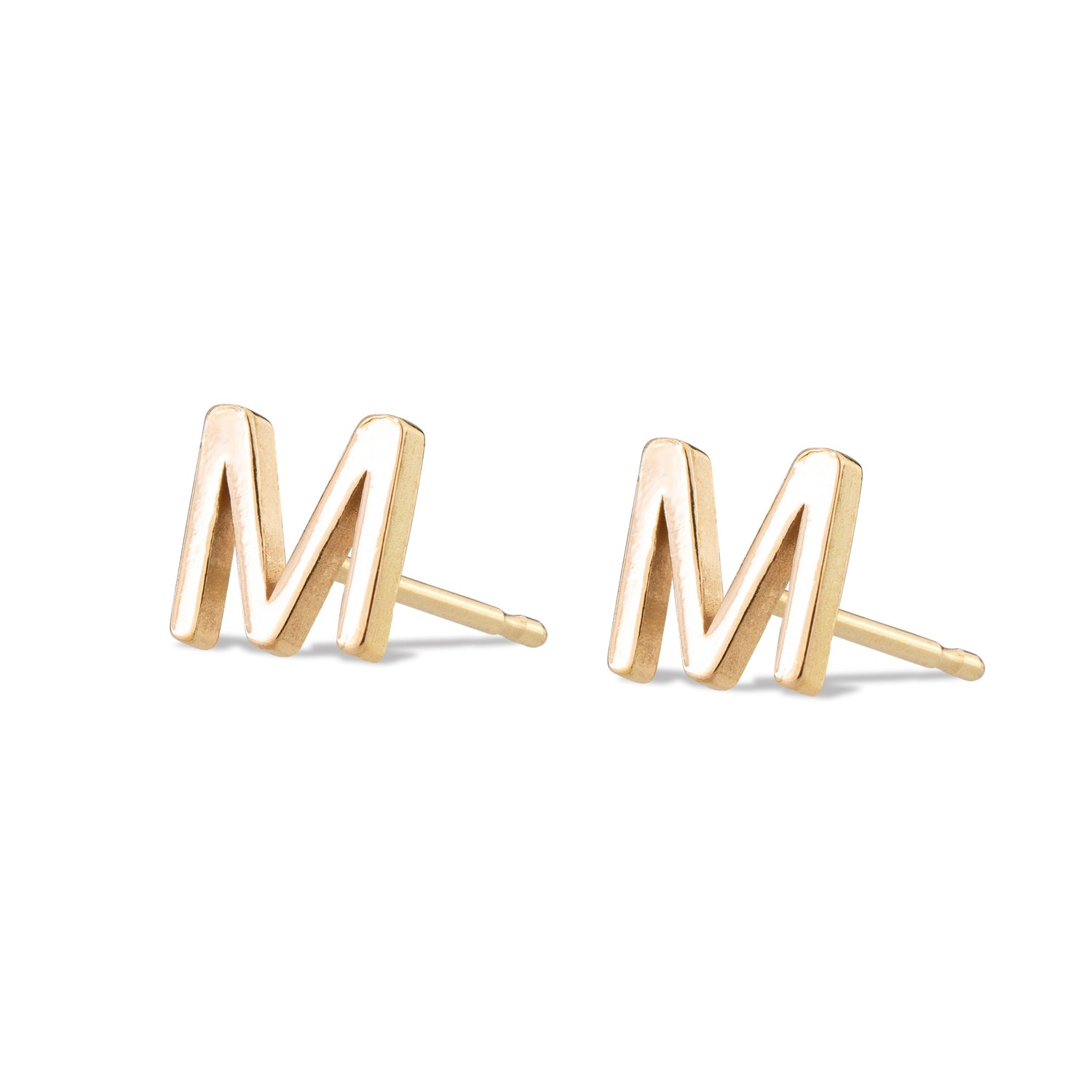 This earring is a mini letter stud made of 14k gold. It is sold as a single earring.