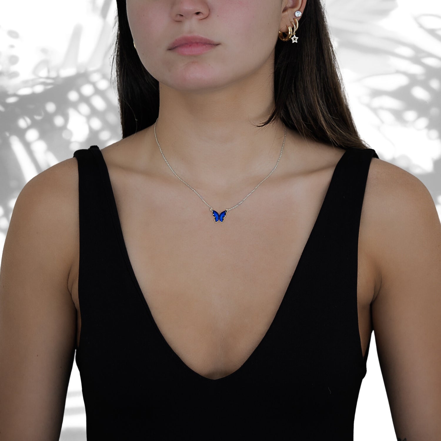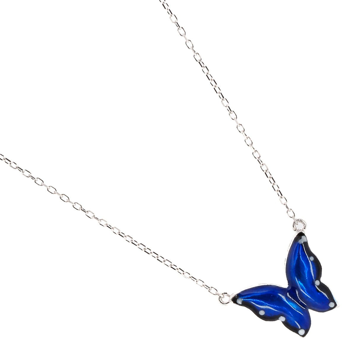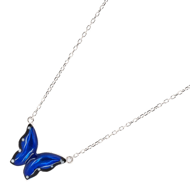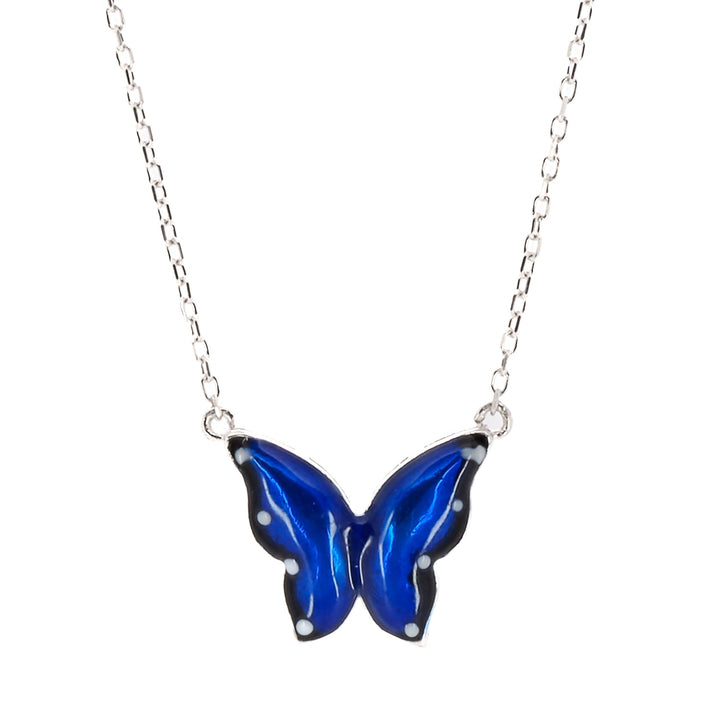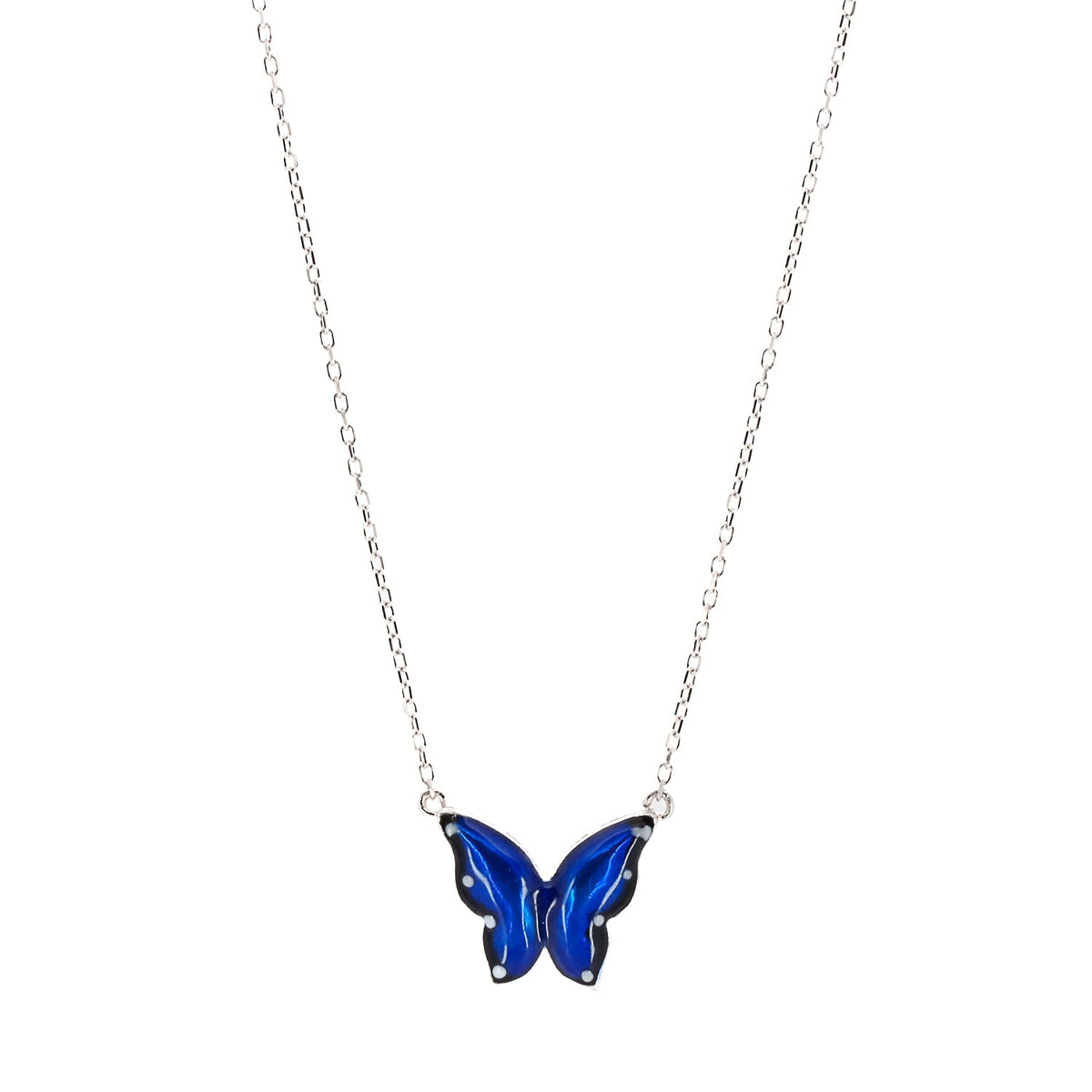 Spiritual Butterfly Blue Enamel Sterling Silver Necklace - Blue