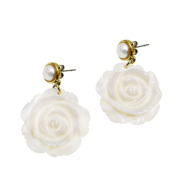 Rose Flower Shaped Shell Dangle Statement Earrings