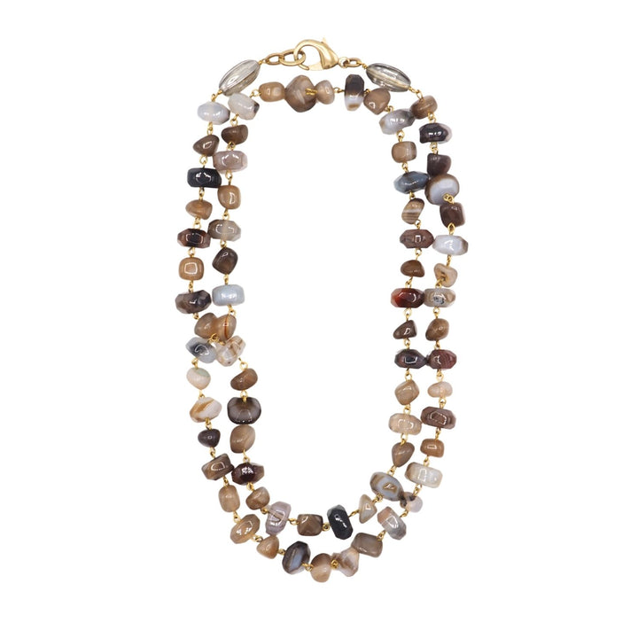 This El Volcan Necklace by Sita Nevado is a striking statement piece that radiates a bold, earthy elegance. Made with faceted natural stones, its design evokes the raw, powerful beauty of a volcano. The stones are thoughtfully set with brass wires, creating a piece full of texture and character. At a generous length, this necklace is designed to be a focal point, perfect for adding a touch of dramatic and sophisticated flair to both casual and formal ensembles. It’s a true celebration of natural form and artistry.