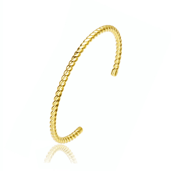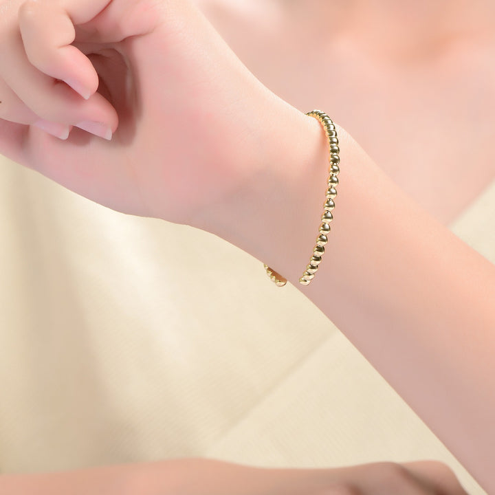 This 7-inch cuff bracelet is crafted with 14k gold plating and features a beaded design.