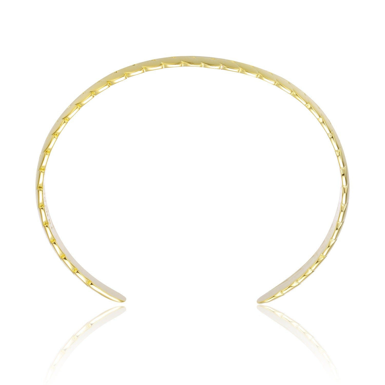 This Rachel Glauber Gold Plated Leaf Cuff Bracelet by Genevive Jewelry is a nature-inspired accessory with a stylish flair. The design is composed of small, delicate leaf-like elements that form a beautiful and intricate pattern. This cuff is the perfect piece of jewelry for stylish combinations, adding a touch of organic elegance to your ensemble.