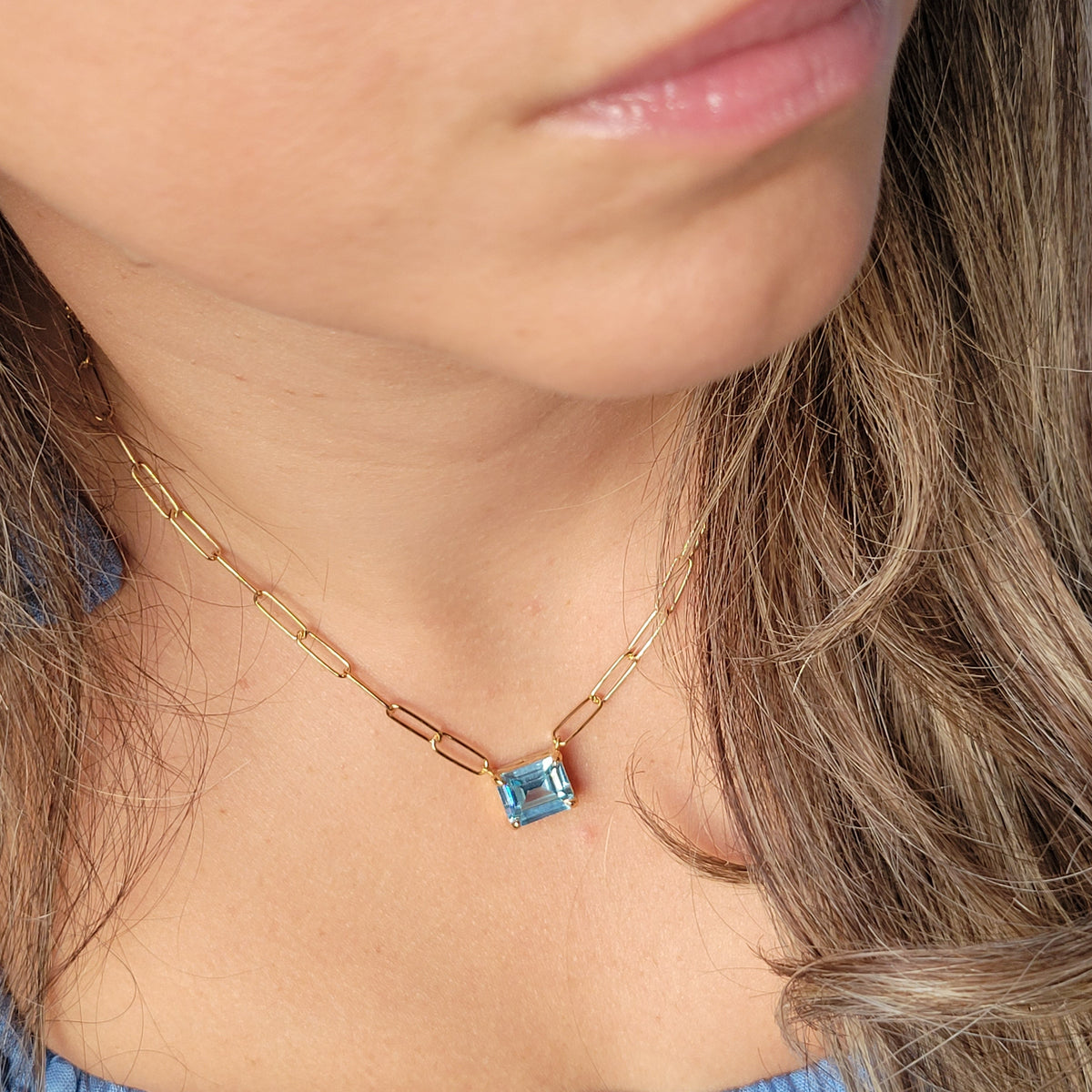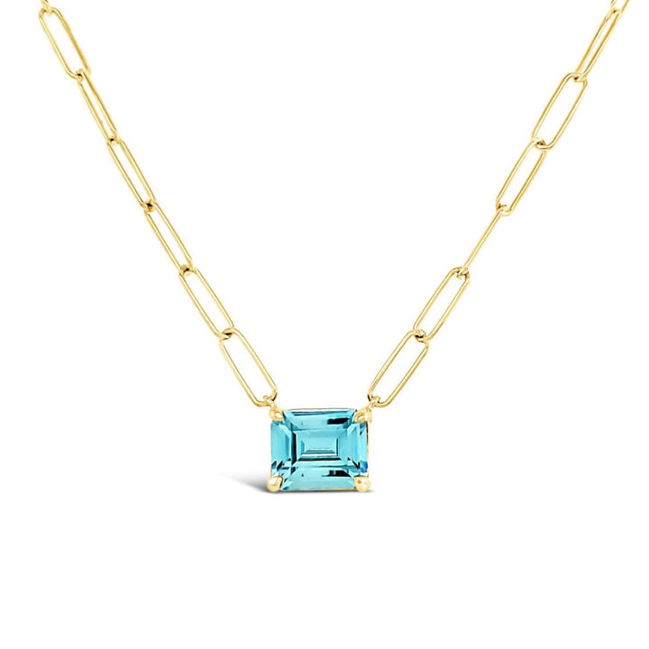 This Paperclip Chain With Colored Stone Blue Topaz - Gold by Lutiro is a classy, elegant, and chic accessory that is perfect for any special event. This necklace features a striking blue topaz-colored cubic zirconia pendant on a modern paperclip chain. It can be worn on its own for a strong, singular statement or styled with other necklaces for a sophisticated stacking look. The durable, anti-tarnishing design ensures it will continue to sparkle just like you.