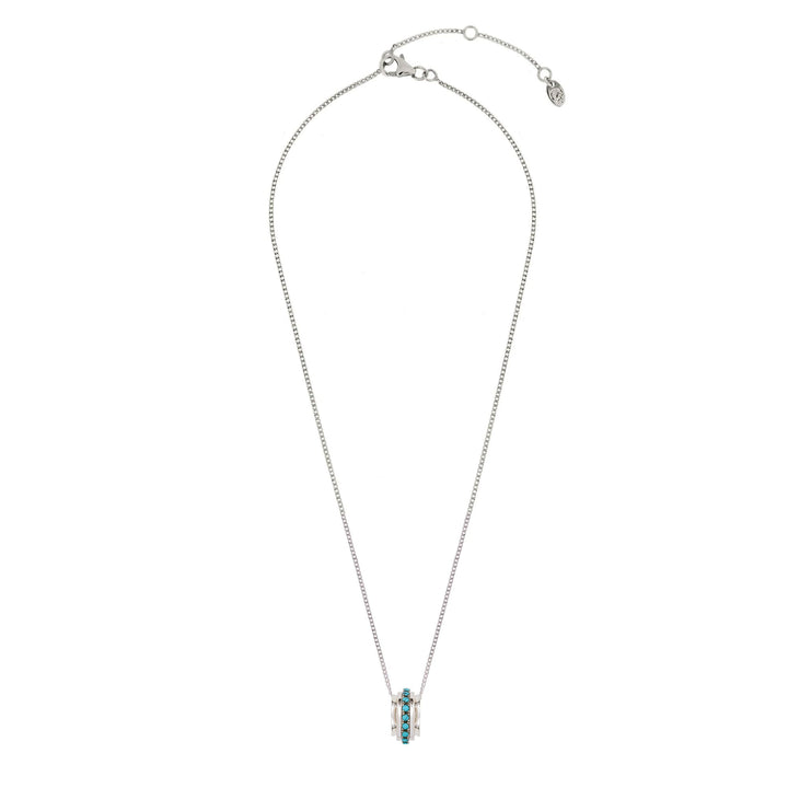 This Parvati Silver Spinning Necklace by Charlotte's Web Jewellery is inspired by the divine energy of Parvati and ancient Tibetan prayer wheels. The handcrafted spinning pendant, set with natural turquoise, is both a calming ritual and a meaningful piece. The gentle spinning helps ground your thoughts, while the turquoise stone provides protection, peace, and emotional balance. This elegant and symbolic necklace is a powerful everyday talisman and a wearable mantra.