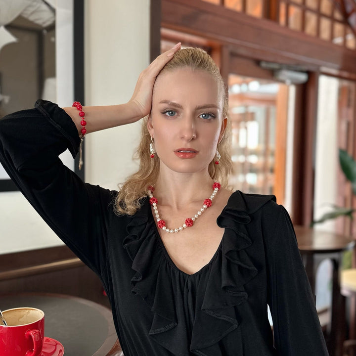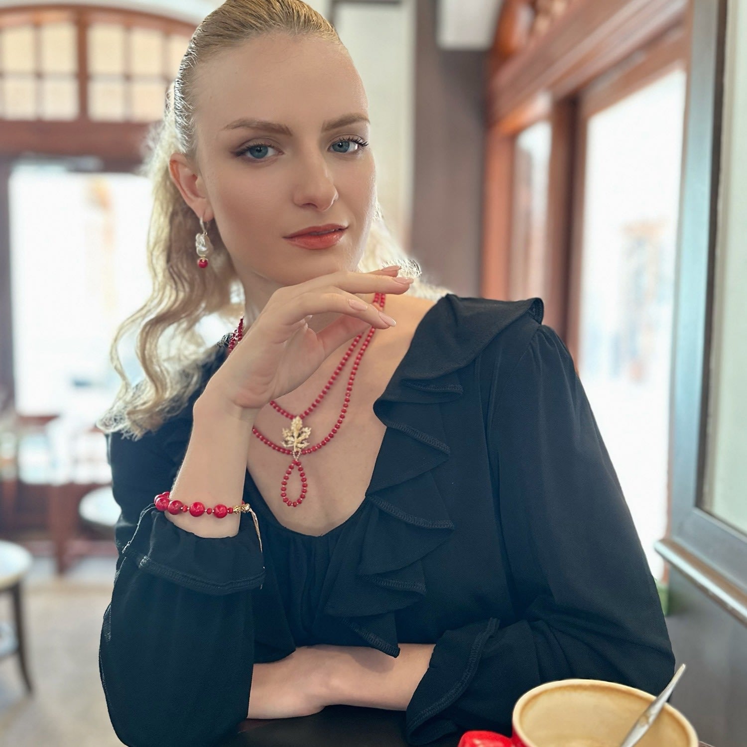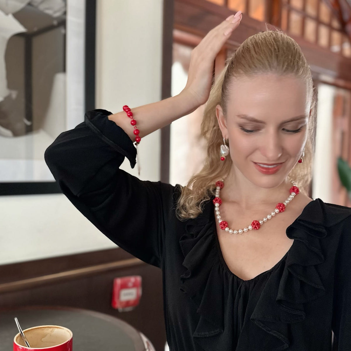This Holiday Gift Red Bamboo Coral Adjustable Bracelet by Farra is a festive and versatile accessory, perfect for celebrating the holiday season. The vibrant red bamboo coral beads, a classic symbol of festivity, are arranged in an adjustable design for a perfect fit. This bracelet is a thoughtful and stylish gift choice that can be worn to add a pop of cheerful color to any holiday ensemble.