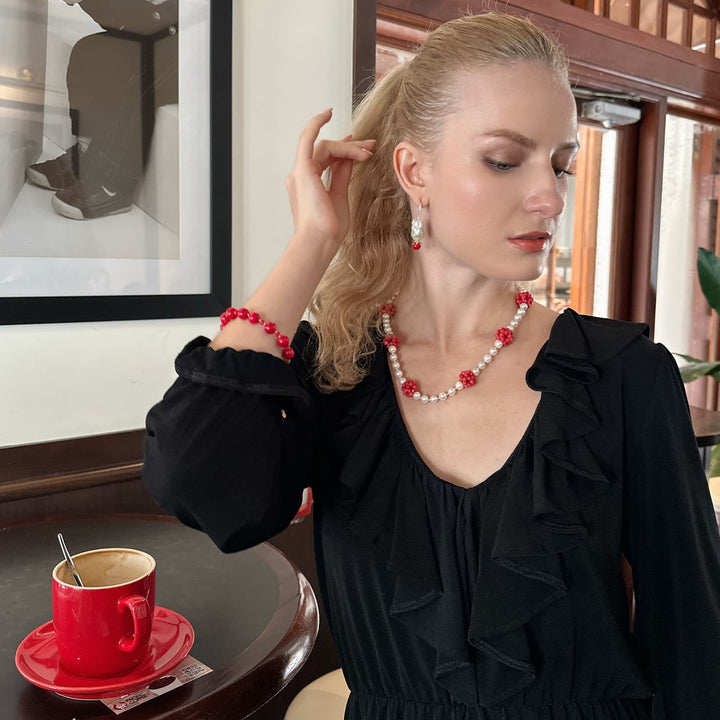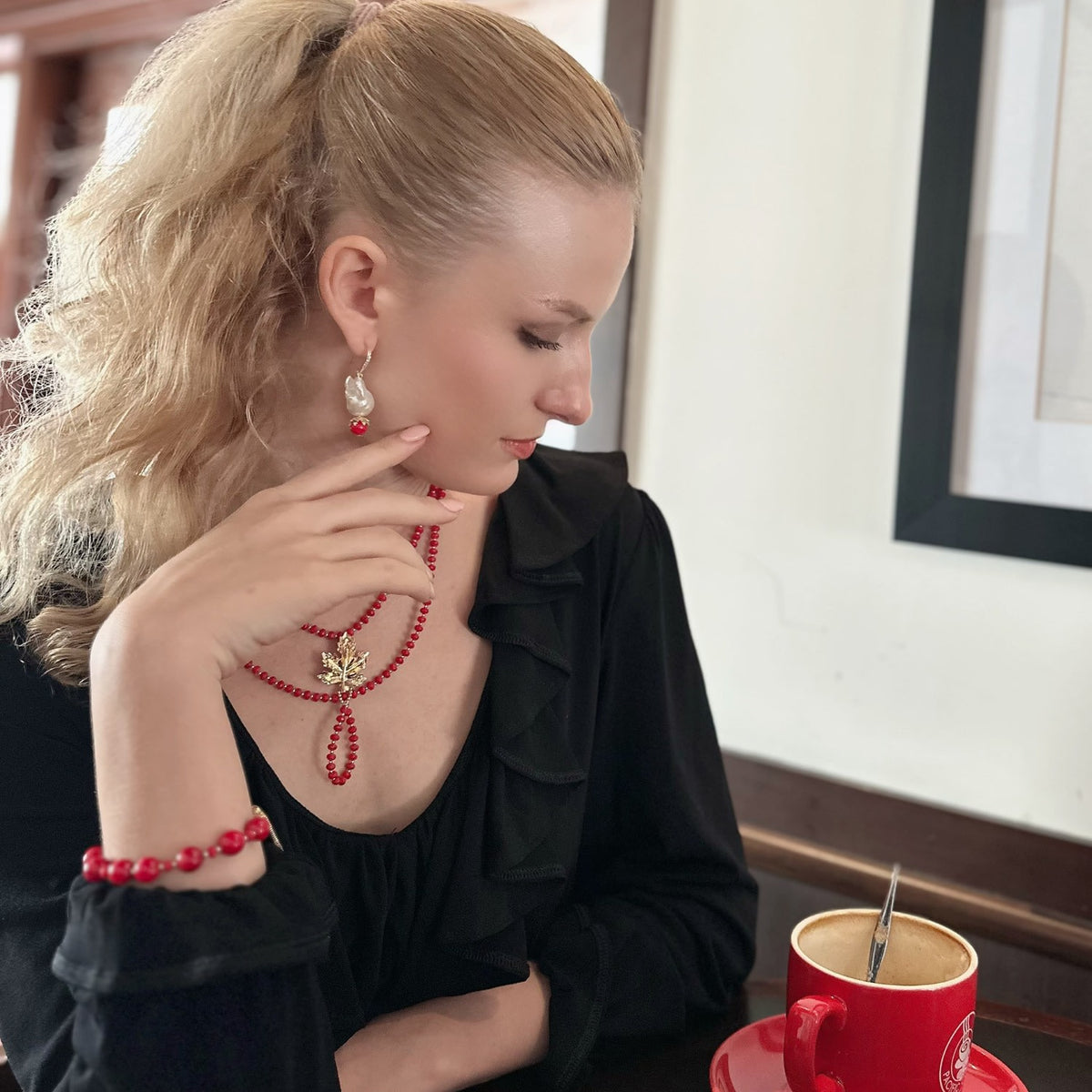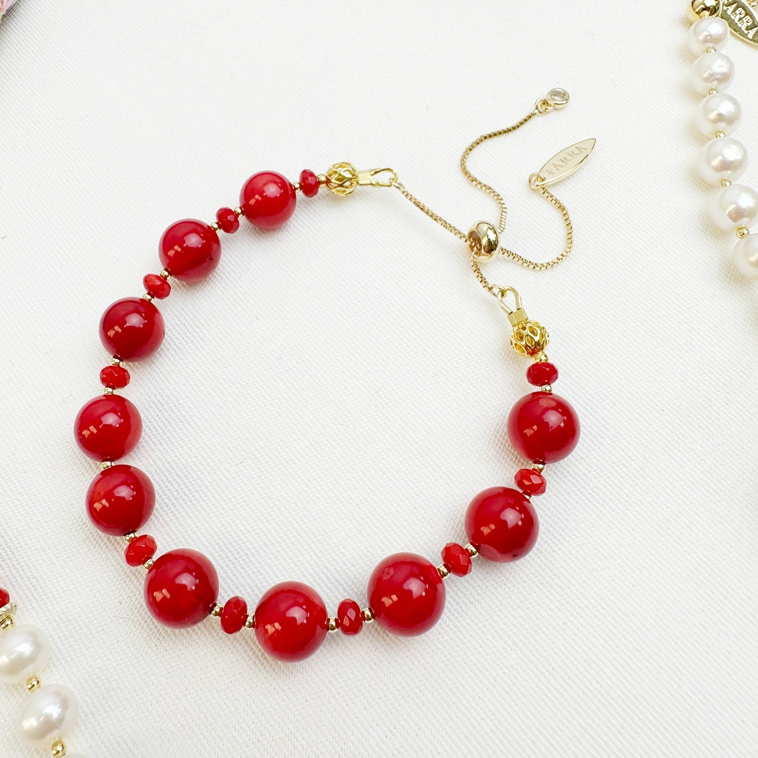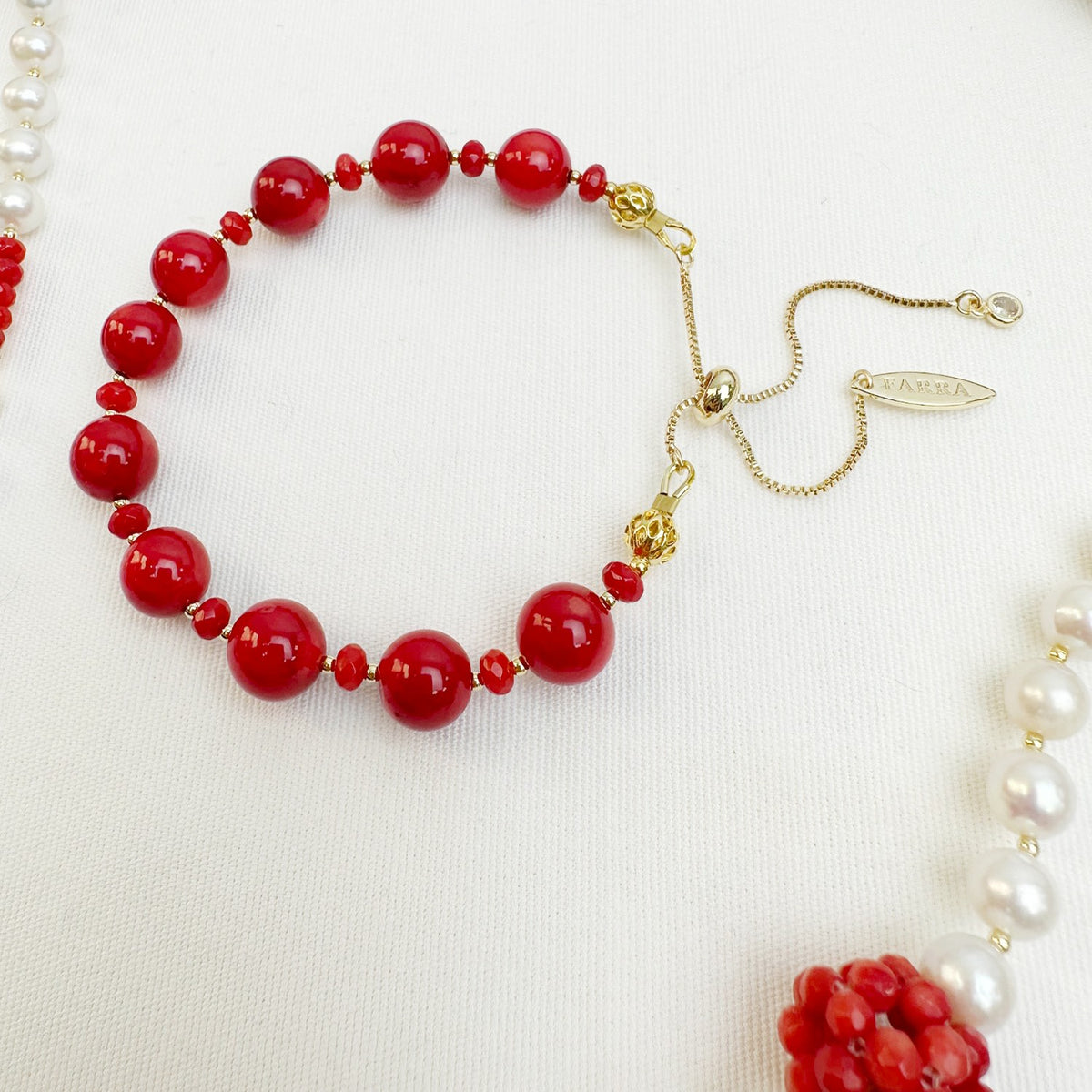 Holiday Gift Red Bamboo Coral Adjustable Bracelet