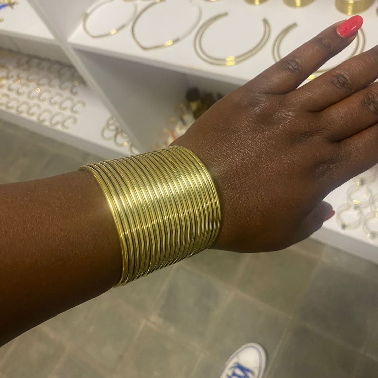 Handcrafted from 100% recycled brass. Double-coiled design. Artisan-made in Kenya.