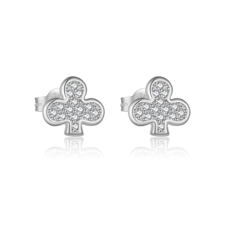 Devoted Spade White Gold Plated Sterling Silver Zircon Ear Studs
