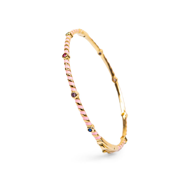 This Pink Multicolor Enamel Bracelet by Ep Designs is a handcrafted and colorful accessory that adds a vibrant pop to your wrist. The enameled links in multiple colors create a fun and unique design. This bracelet is a perfect choice for those who want to express their personality through their jewelry.