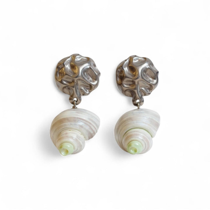 These Shell Statement Earrings by Martina Rozenberg Smira Jewelry are a unique and elegant accessory from the "Oh My Pearl" collection. They are handmade with genuine freshwater pearls and feature gold-plated components. The timeless design with a soft shine and gentle charm makes them perfect for weddings, romantic moments, or as a subtle detail for everyday wear.