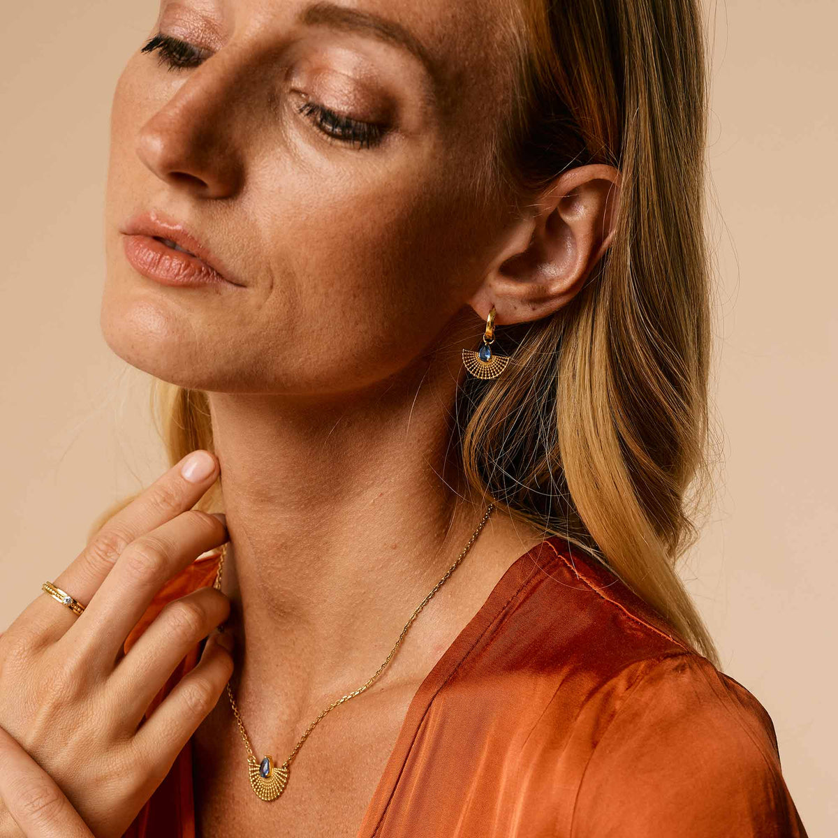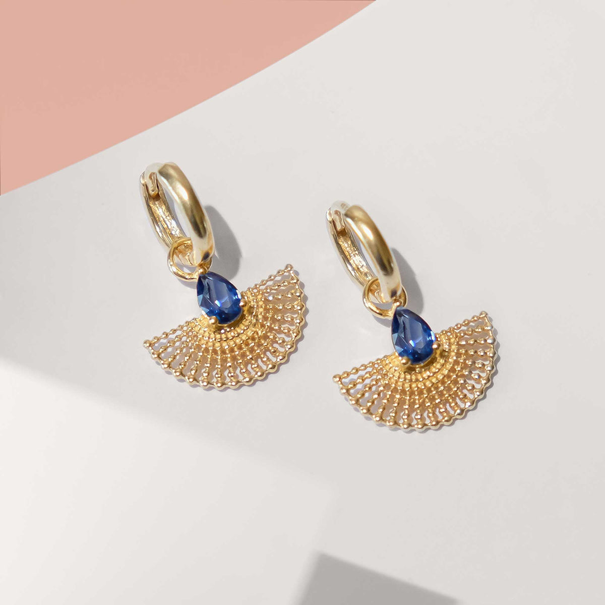 These Surya Gold Earrings by Charlotte's Web Jewellery are a testament to artisanal craftsmanship and sustainable design. Inspired by the radiant beauty of the sun's rays, these delicate fan-shaped earrings are meticulously handcrafted by skilled artisans. Tiny gold beads combine with a vibrant blue kyanite stone, creating a unique and elegant look that is perfect for both everyday wear and special occasions. They are designed to symbolize balance and harmony, making them a thoughtful and meaningful addition to any jewelry collection.