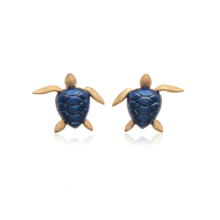 These Navy Blue Sea Turtle Earrings by Milou Jewelry are a charming accessory with a deep, symbolic meaning. Sea turtles are known to represent patience, wisdom, and longevity, making these earrings a heartfelt token of these qualities. Their cute and perfect size makes them versatile for any outfit, from a breezy summer dress to swimwear. Handmade with attention to detail, they add a touch of playful elegance and positive energy to your look.