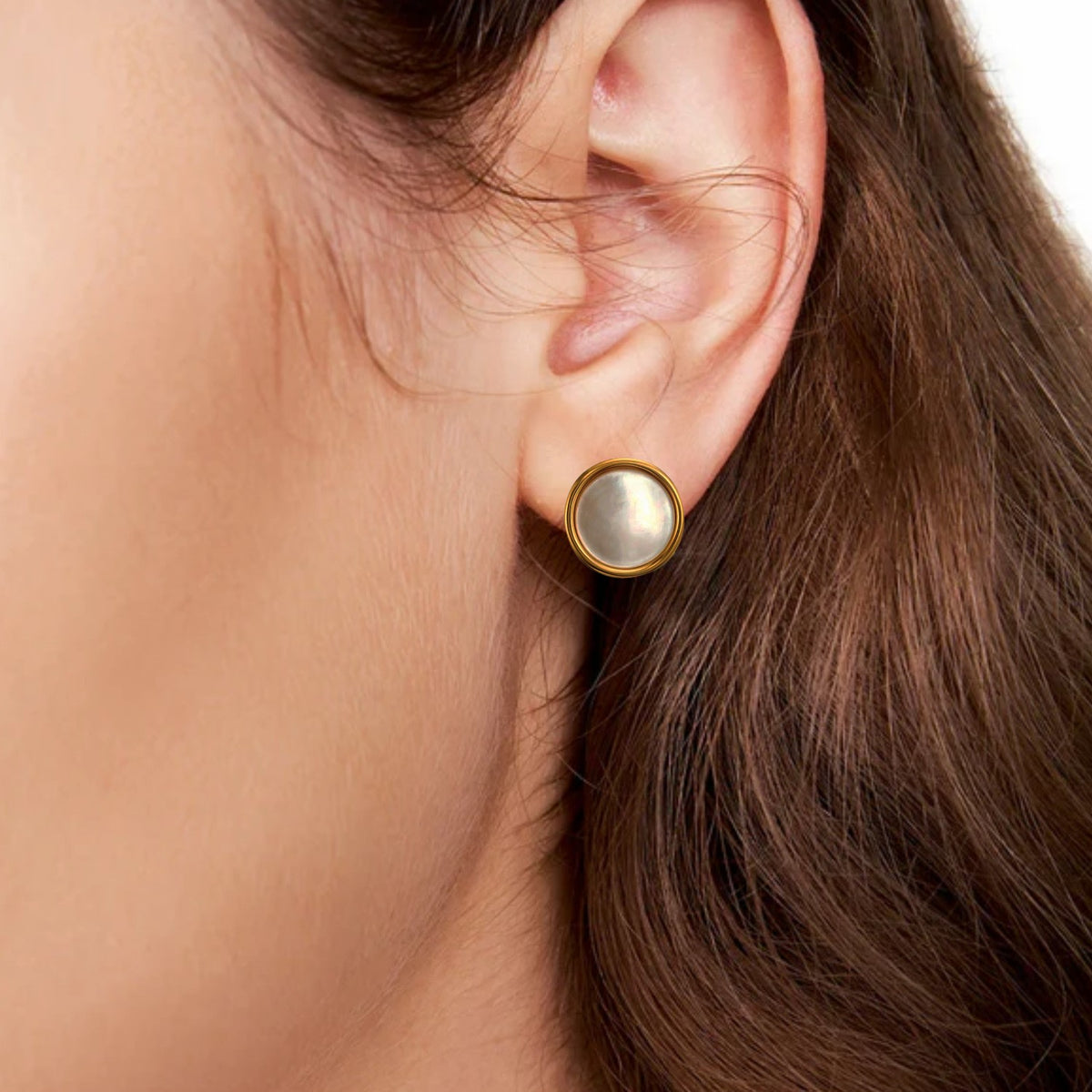 Stud Earrings In Gold Plated With Mother Of Pearl