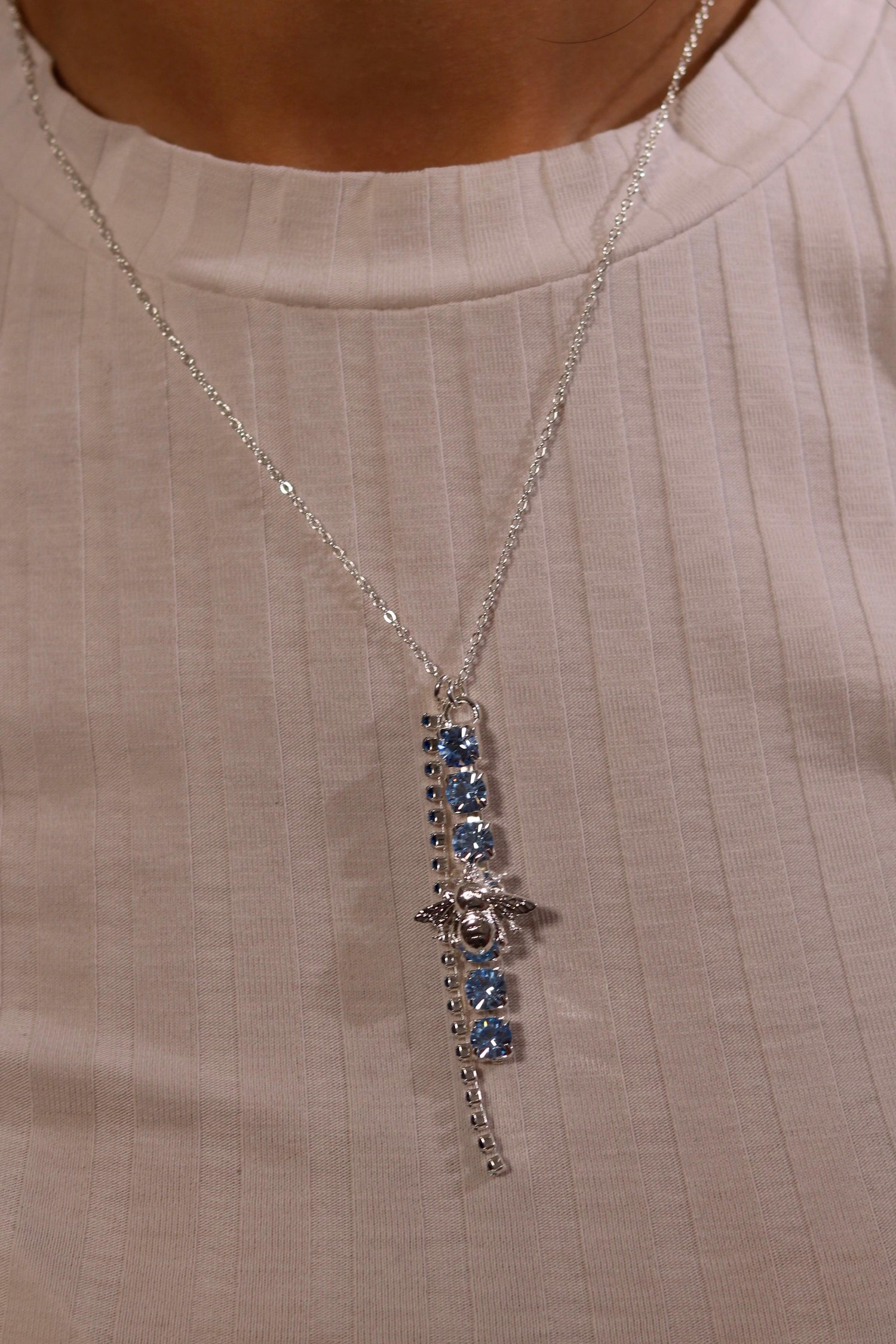 This necklace is crafted from Sterling Silver plated and Nickel-free Brass and features premium Austrian Crystals. It has a bug motif. It is a single necklace.