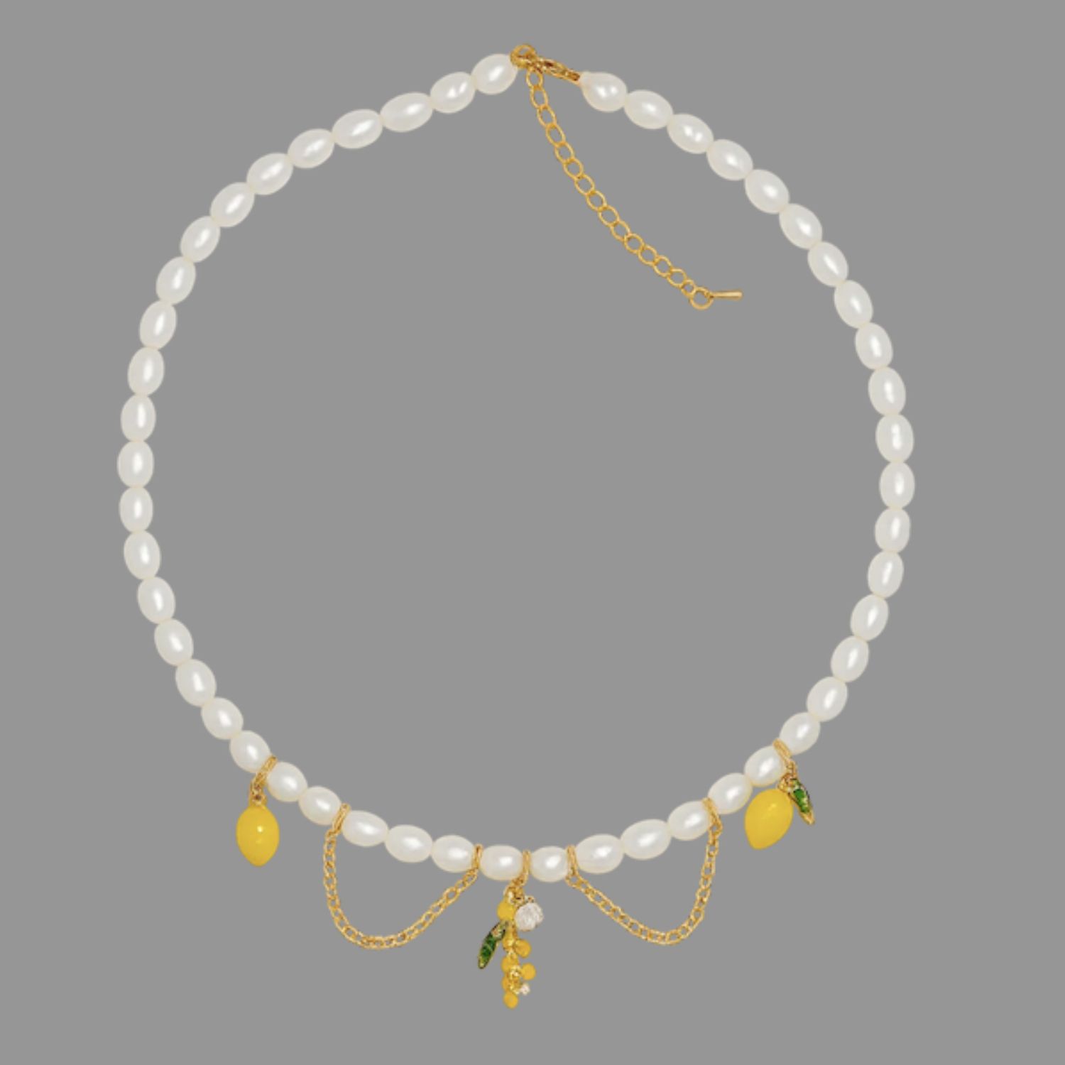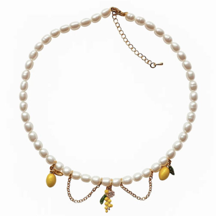 Natural Pearl Necklce With Lemon Charms - Long Freshwater Pearls Beaded Necklace - Forever Jewellery
