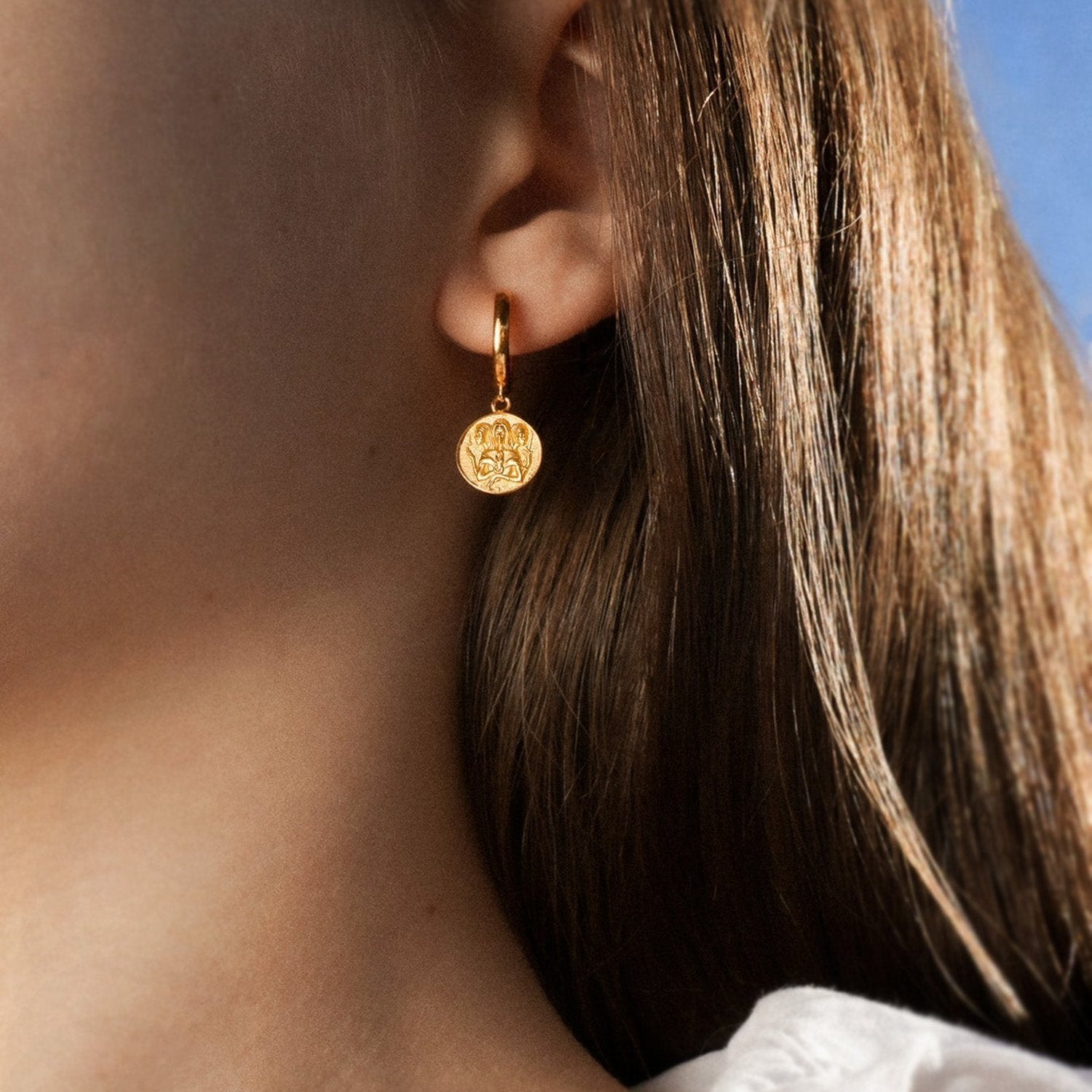 These Hecate Earrings in Vermeil by Vermaye Switzerland are sculptural talismans of intuition and transformation. Inspired by the goddess of thresholds, their gold-sheathed pendants embody mysticism and inner power. Lightweight and refined, they’re perfect for layering or wearing as a symbolic daily ritual.