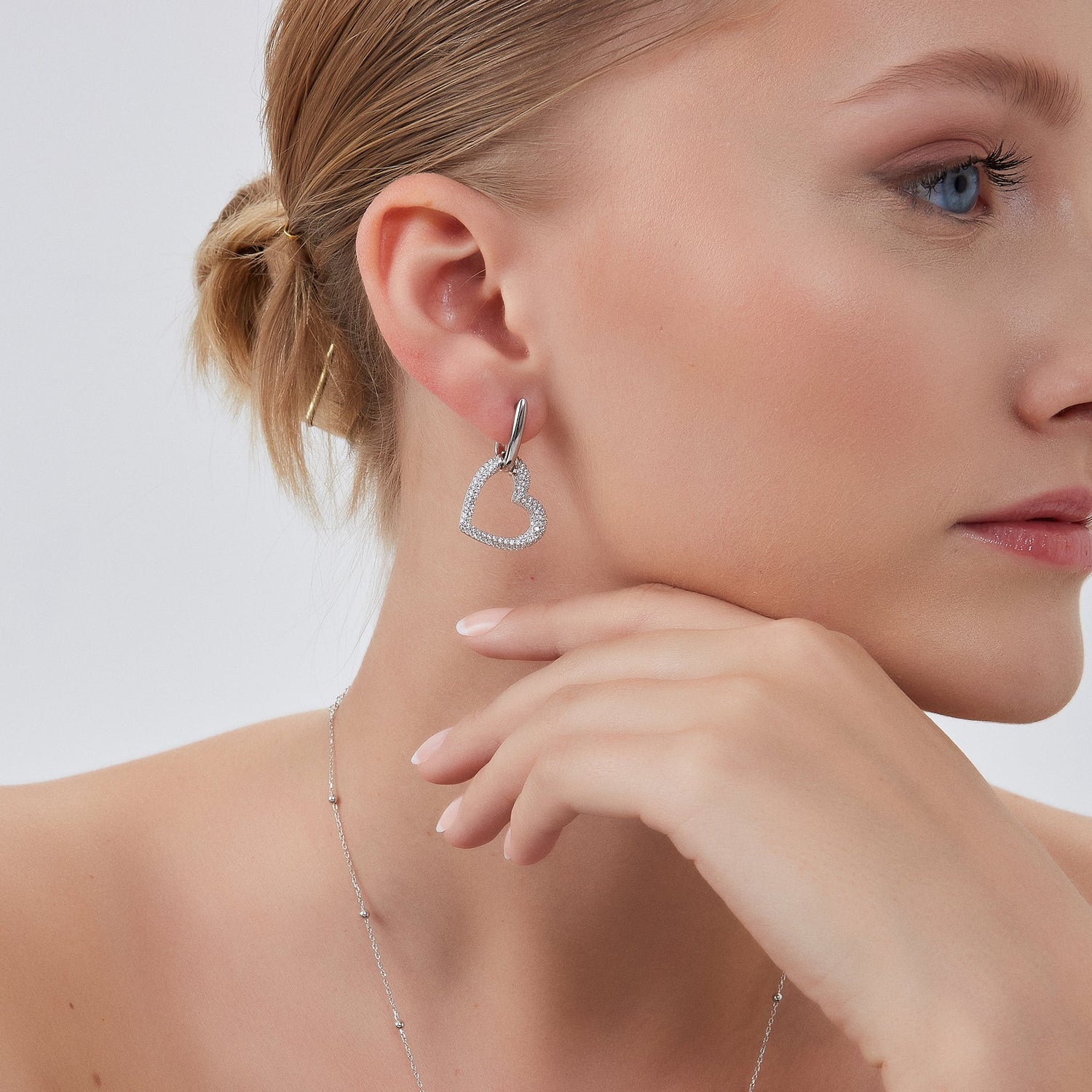 These Chunky Heart Sterling Silver Drop Earrings by Spero London are perfect for adding a little love to your look. These hefty heart-shaped hangers will make a statement with their sterling silver construction, adding a splash of sparkle and affection to any outfit. They are a fun and stylish way to show off your love.