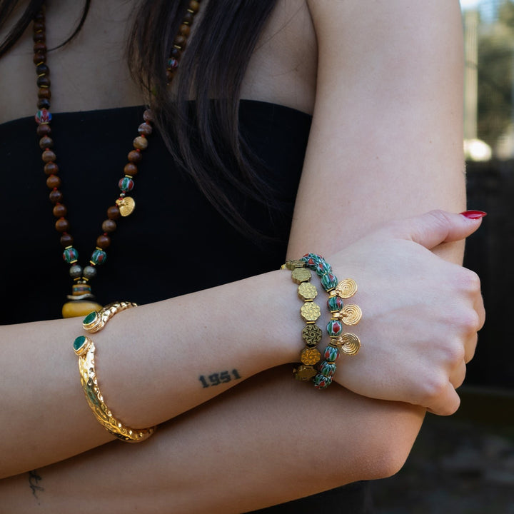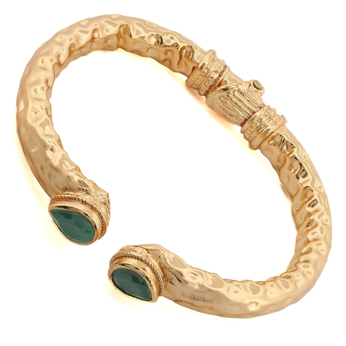Cleopatra Emerald Stone & Gold Cuff Chunky Bracelet - Gold