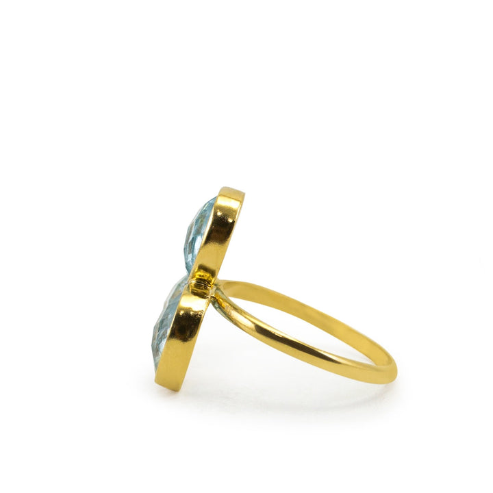 This Positano Sky Blue Topaz Gold Ring by Vintouch Italy channels the radiance of southern Italy with a trio of luminous sky blue topaz stones. Each gemstone is believed to embody joy, abundance, and generosity, infusing the piece with uplifting symbolism. Part of the Brio collection, the design captures the serene blues of the Amalfi Coast and pairs effortlessly with both daywear and evening ensembles. A celebration of Italian artistry, this ring feels both personal and timeless.