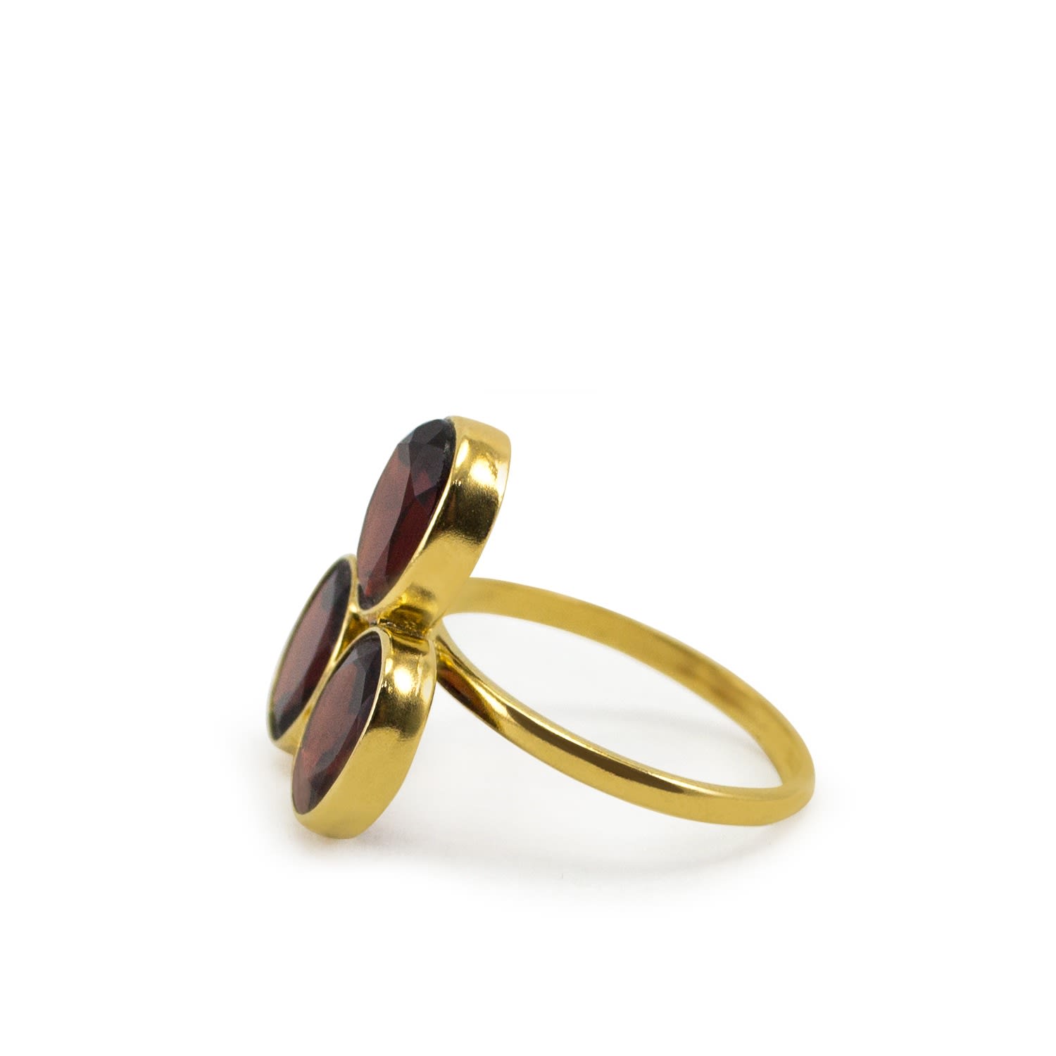 Handmade in Italy. 18k yellow gold vermeil over sterling silver (1 micron plating). Set with three garnet stones. Nickel-free and EU Reach/Rohs compliant.