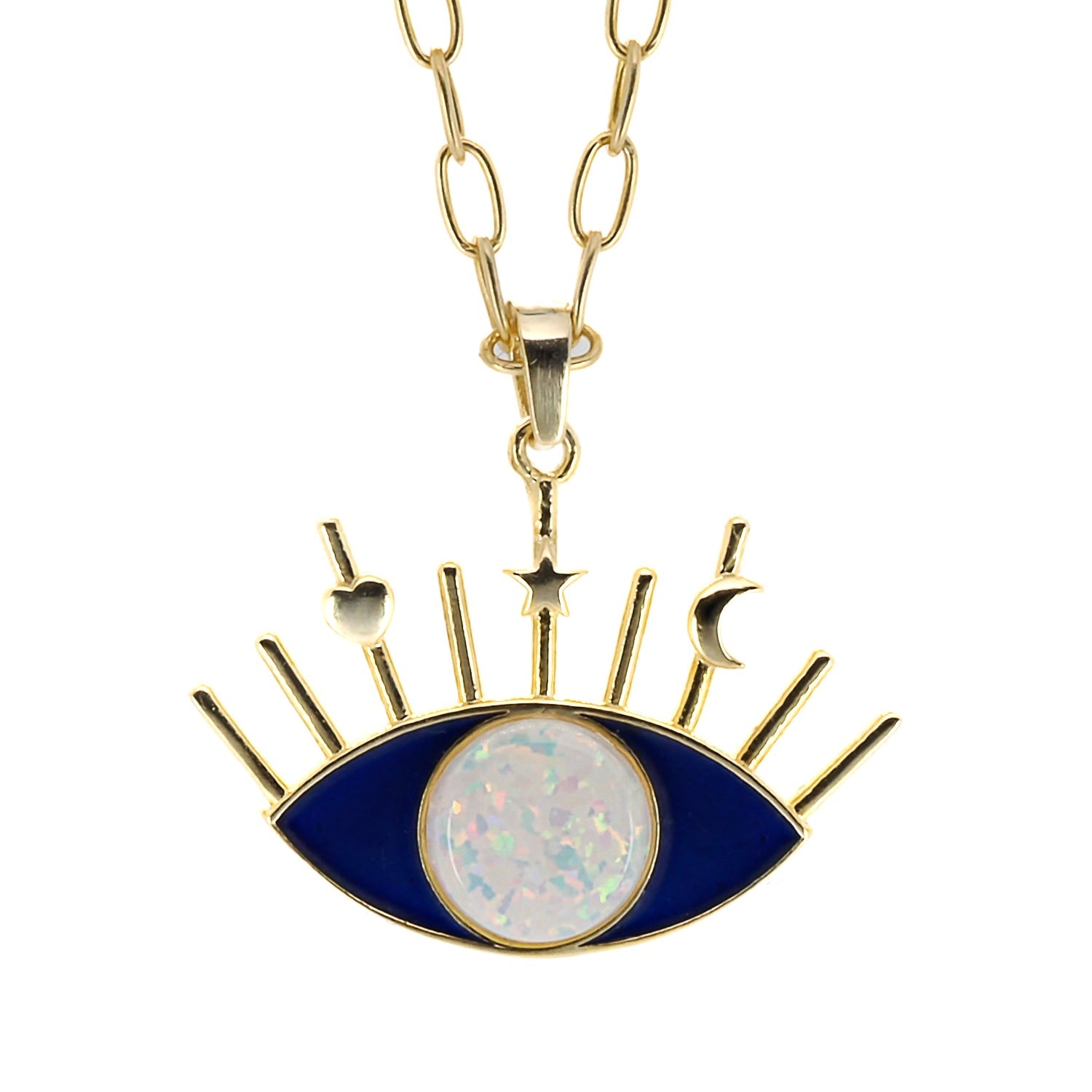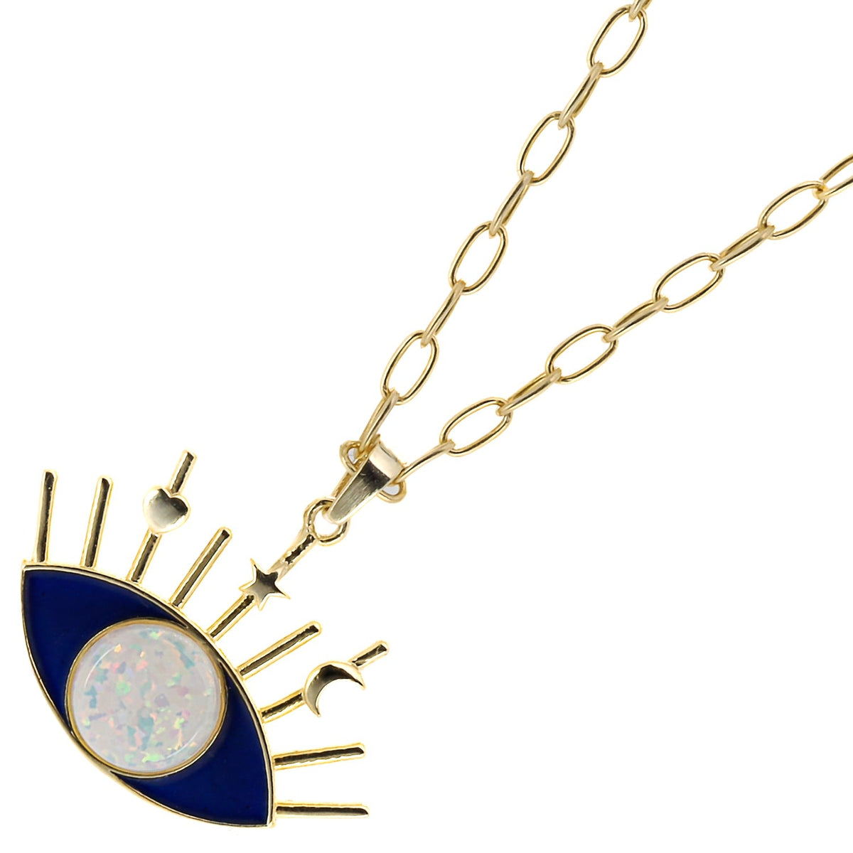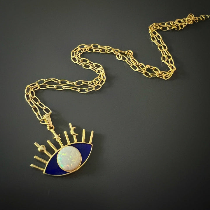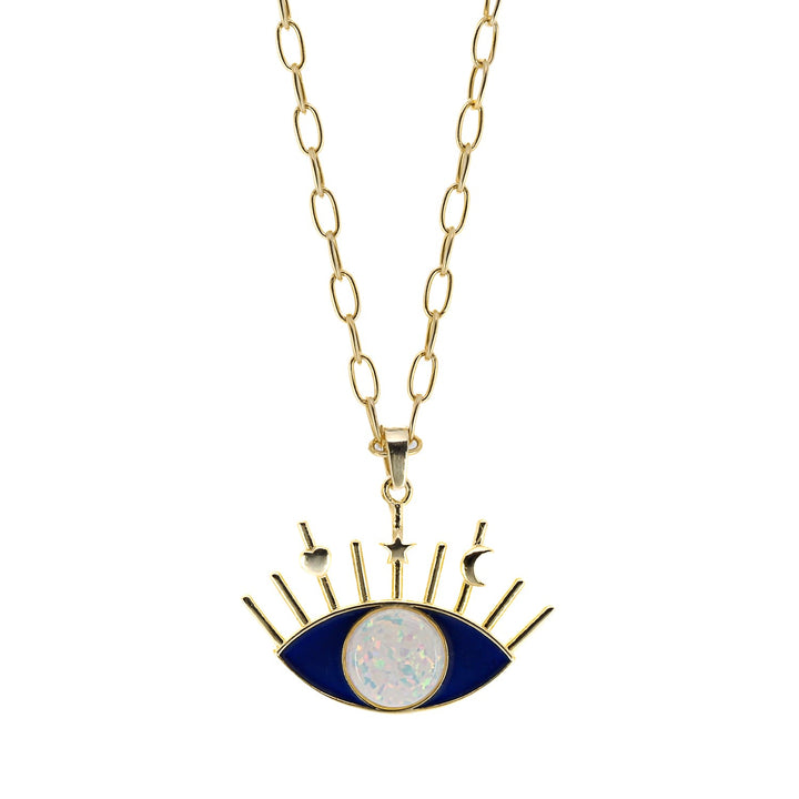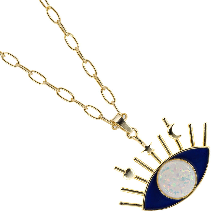 Opal Blue Evil Eye Necklace - Blue