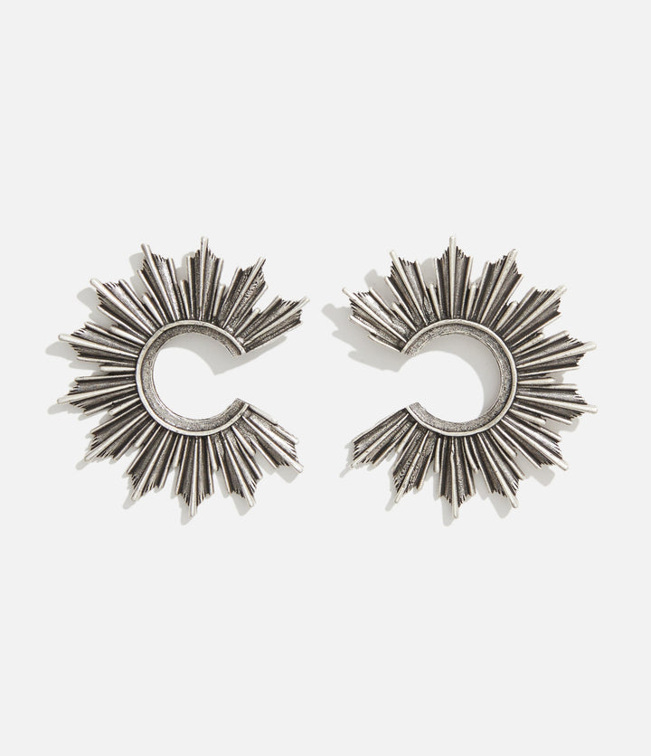 These Sunburst Earrings - Silver by Lovard are fit for a goddess. The crescent-shaped sunburst design, inspired by the ancient Greek goddess Sol, adds a touch of celestial elegance to your look. They are a bold and beautiful statement piece for those who want to radiate power and style.