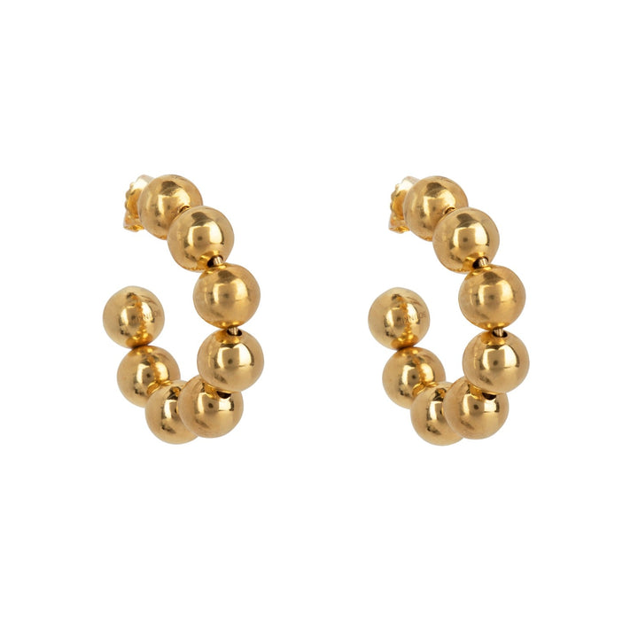 These hoops are crafted from base metal with 14k gold plating and an 8-bead design. They feature a post butterfly closure and are lightweight.