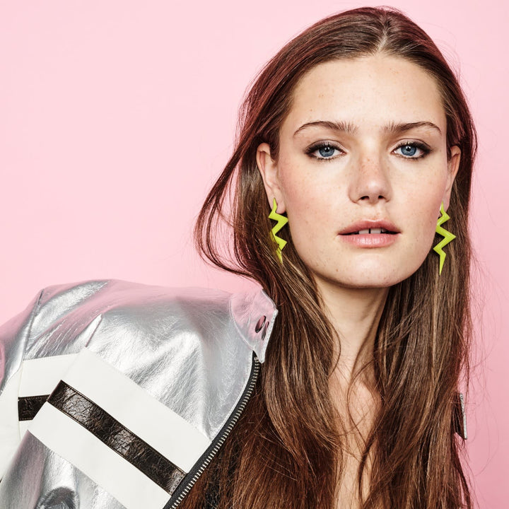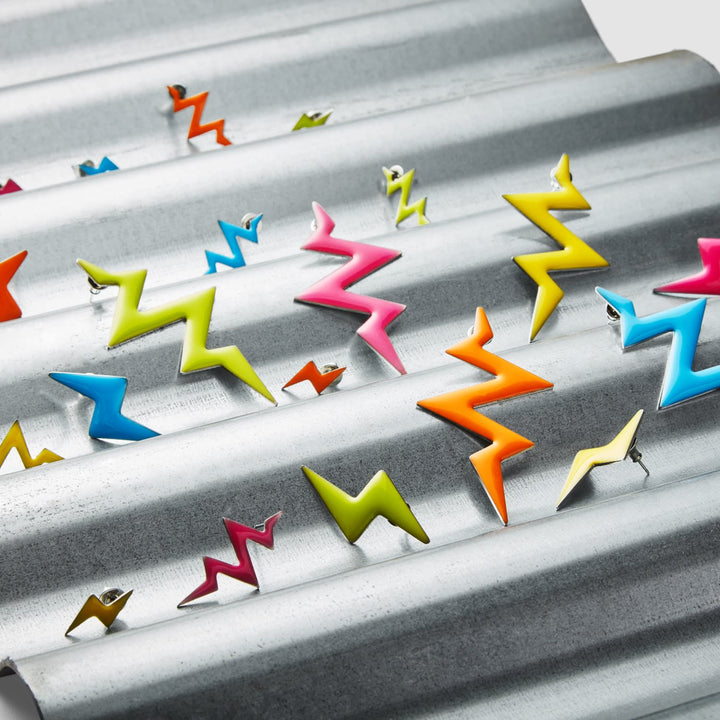These Beats - Orange Enamel by Toolally are a pulse of energy in a vibrant orange enamel. Inspired by the human heartbeat, they are designed to set pulses racing, no matter how you style them. The bubble design softens the sharp edges, giving them a dynamic, vibrant shape that's still comfortable to wear. These colorful statement earrings are lightweight and versatile, perfect for adding a bold and lively touch to any outfit.