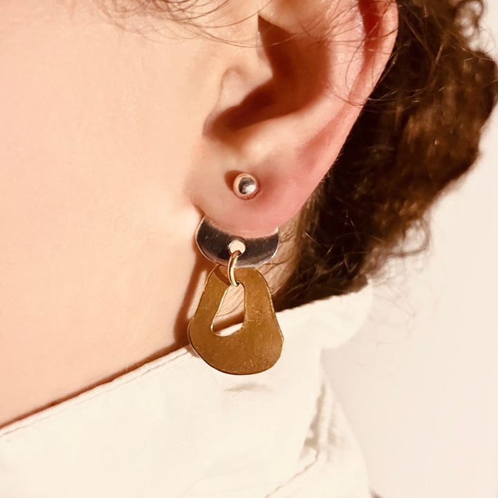 These earrings are handmade from recycled sterling silver and 18k gold vermeil.
