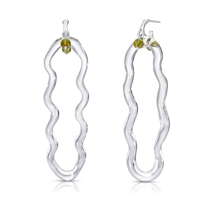 Wavy Earrings With Glass Link - Light Green Tourmaline |October Birthstone| & Sterling Silver