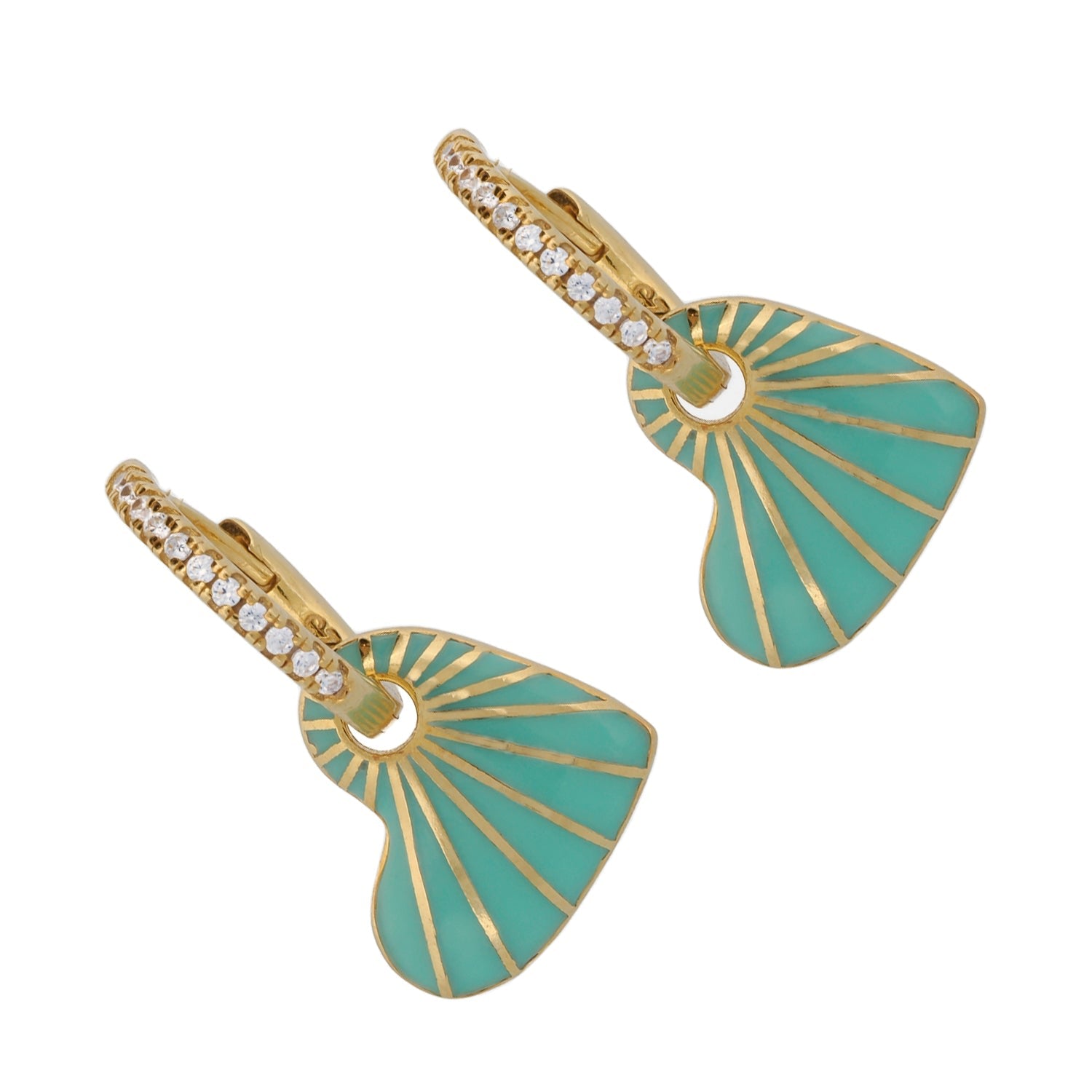 Green Enamel Heart Diamond Hoop Gold Earrings - Green