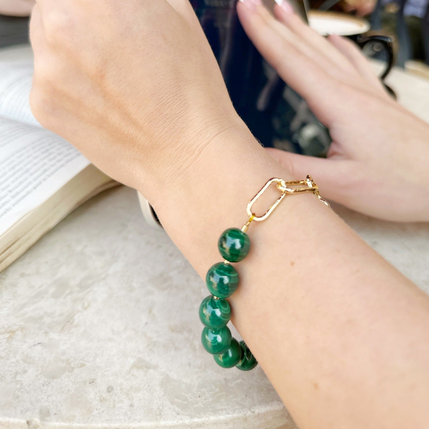 Round Malachite Adjustable Chain Bracelet