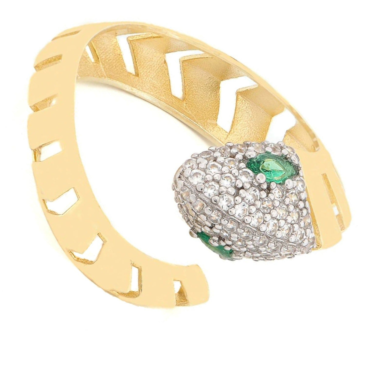 Guardian Snake Emerald Eyes Gold Ring - Gold