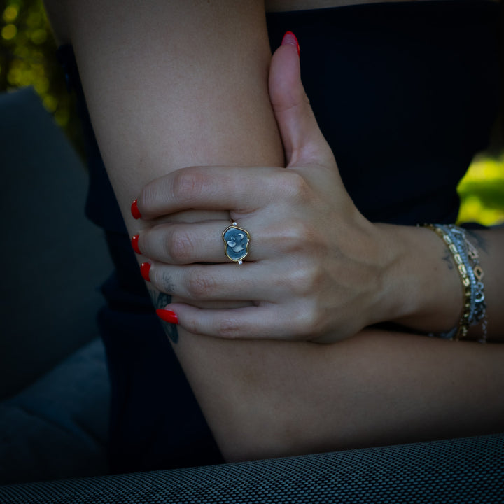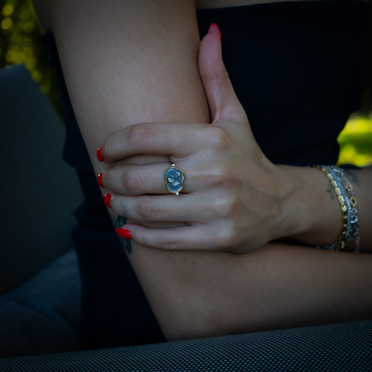 This Lucky Elephant Sterling Silver Adjustable Signet Ring - Silver by Ebru Jewelry is a charming and meaningful piece designed to bring you good fortune and positivity. This elegant signet ring features a finely engraved lucky elephant on a sterling silver surface, which symbolizes strength, wisdom, and prosperity. The ring’s gold vermeil band is adjustable, allowing you to wear it comfortably on any finger.