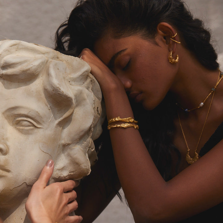This The Unity Ear Gold Ear Cuff by Kensho Heirlooms is a testament to the powerful connection between you and your authentic self. Crafted with a sculptural design, it weaves together your journey of self-discovery, serving as a tangible reminder of your inner strength and the unity within. This versatile cuff can be styled as an ear cuff or a knuckle ring, making it a unique piece that embodies the essence of your personal path.