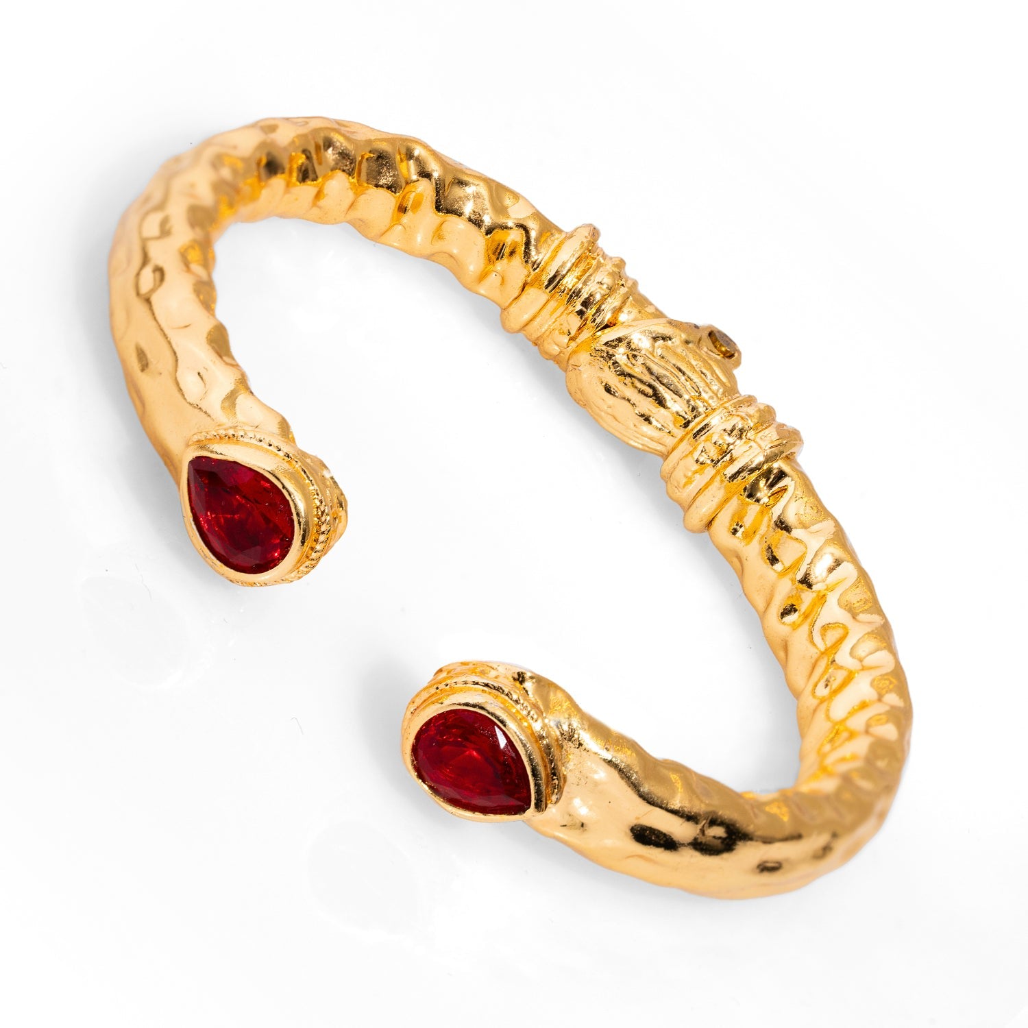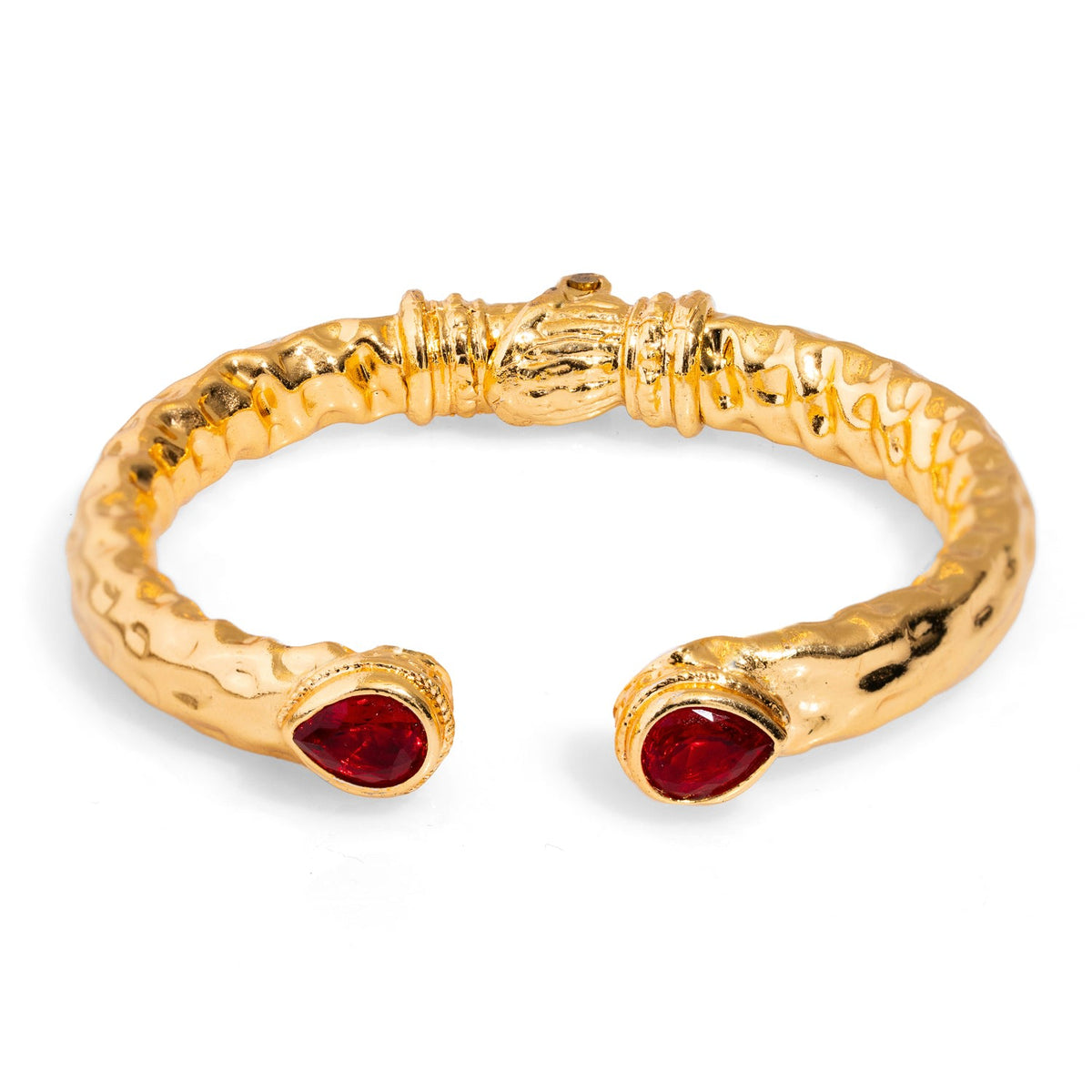 Cleopatra Ruby Stone & Gold Cuff Chunky Bracelet - Gold