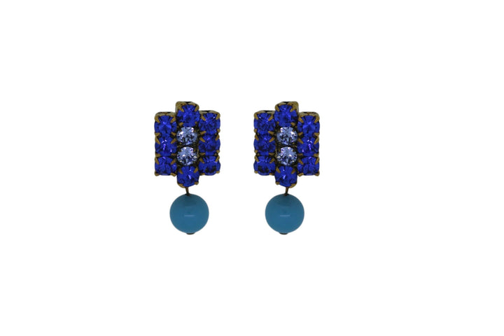These Blue Danube Large Hive Drop Earrings by Vickisarge make a dramatic statement with their architectural form and shimmering detail. The bold silhouette, inspired by hive-like textures, is enhanced by sparkling Austrian crystals that catch and reflect the light beautifully. Handmade in London, these earrings embody both craftsmanship and couture glamour, ideal for making an unforgettable impression.
