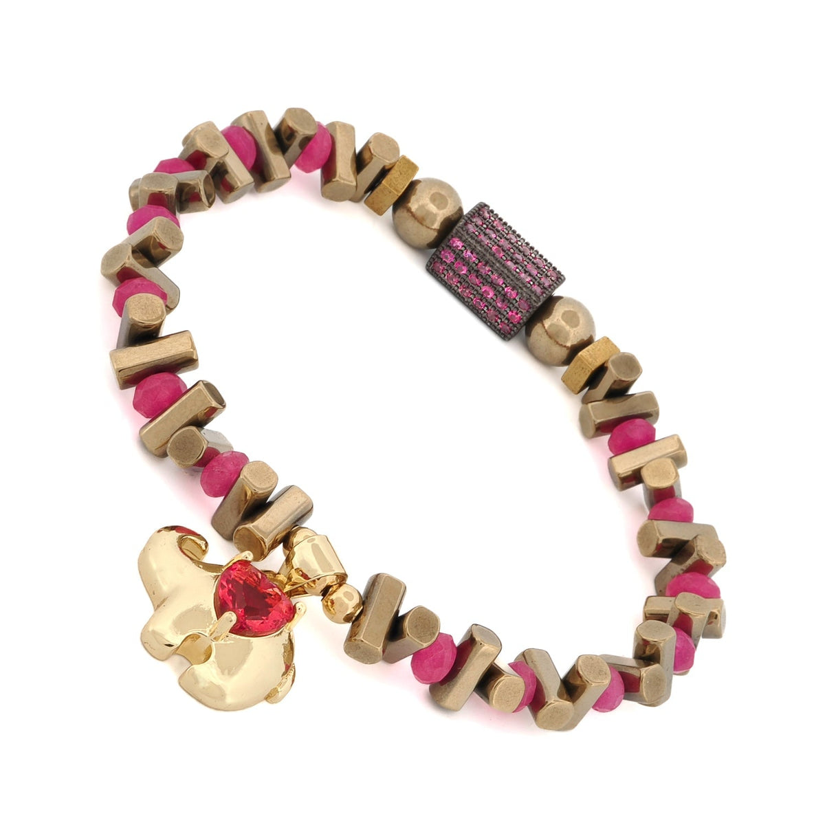 Guardian Love Ruby Heart & Gold Elephant Bracelet - Pink