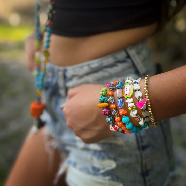The Cycle Of Life Butterfly Bracelet by Ebru Jewelry is a vibrant and spiritually inspired accessory. It features spiritually powerful howlite stone beads and colorful African beads. It also includes a colorful butterfly charm (symbolizing transformation) and an evil eye bead (for protection). It is 6.5 inches in size and made on a high-quality stretchy cord.
