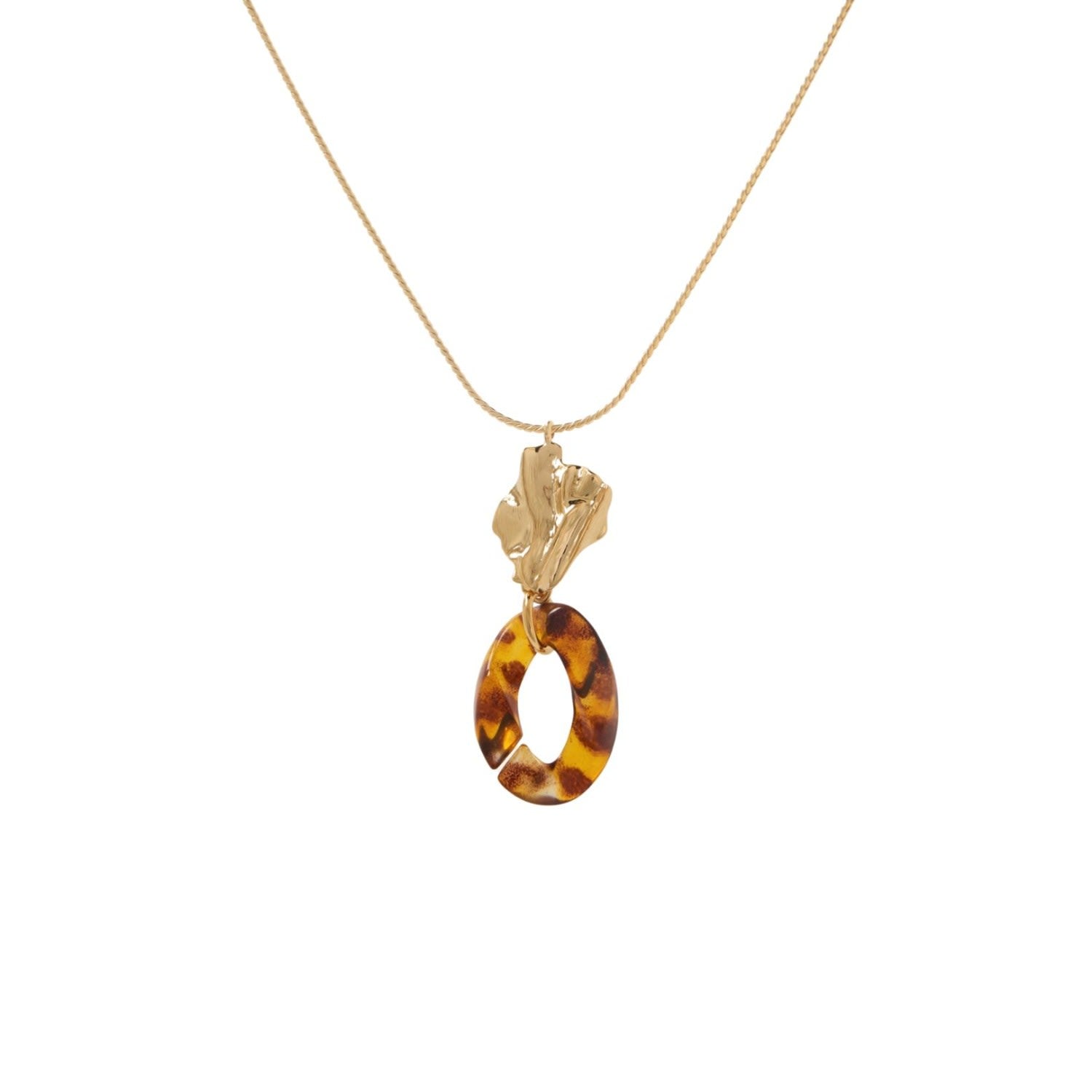 This necklace is crafted from gold vermeil with a gold-plated chain and a tortoiseshell-inspired pendant. The chain is delicate and features a gold-toned accent.