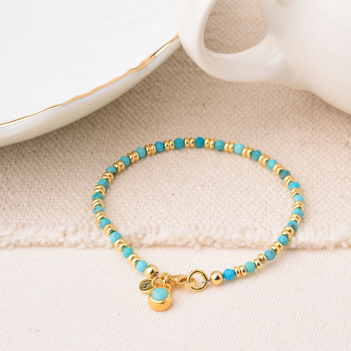 The Linear December Birthstone Bracelet by Nellou Jewellery is the perfect gift for December birthdays. It features natural turquoise gemstones that radiate elegance and embody the serene blue hues of the sea. Its sleek and modern design seamlessly complements both casual and formal attire.