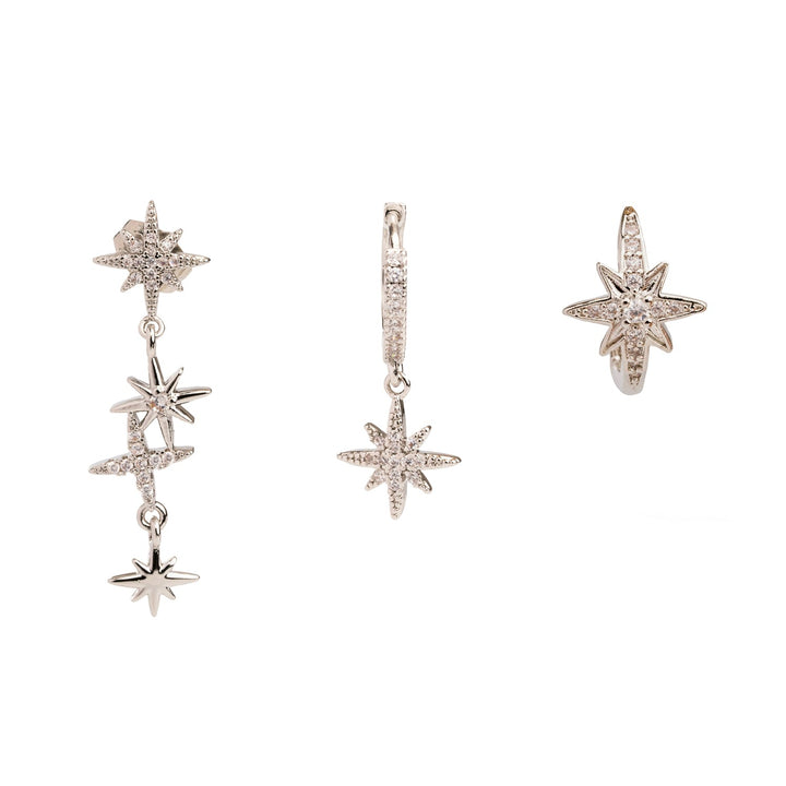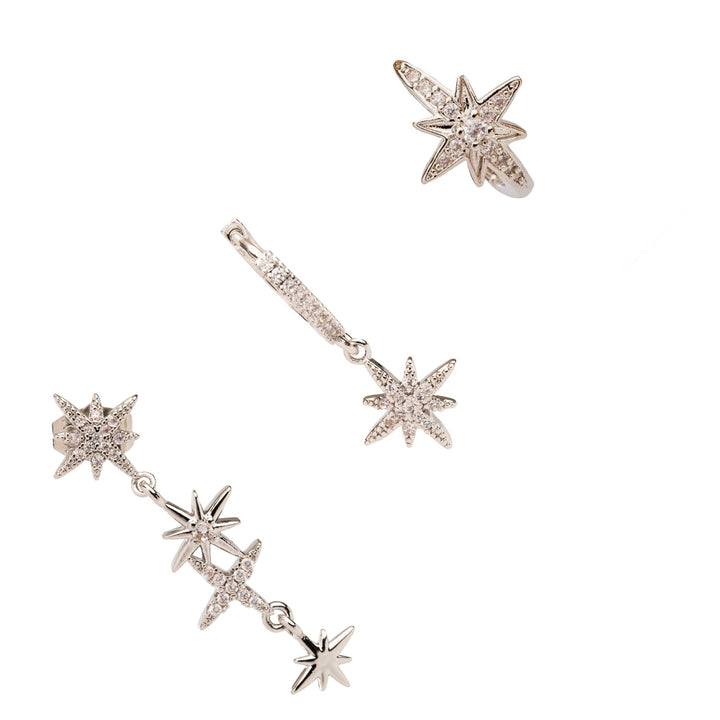 Celestial Trinity Silver & Diamond Earring Set - Silver
