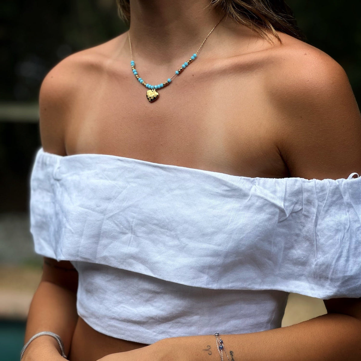Love Heart Pendant Turquoise Color Necklace - Gold
