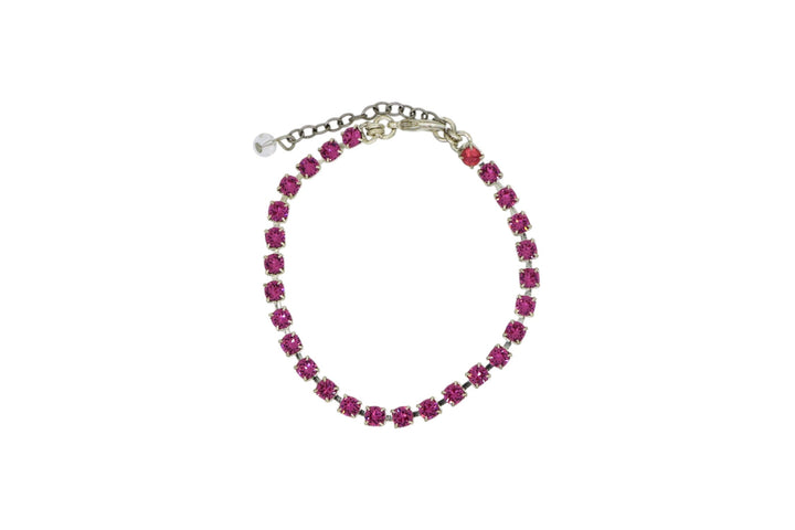 This Pink Tennis Bracelet in Platinum by Vickisarge exudes refined femininity with a luminous line of sparkling pink Austrian crystals. Its radiant finish and flexible structure provide elegance with ease, while the golden plating enhances warmth and brilliance. A luxurious statement piece designed for seamless transitions from day to night.