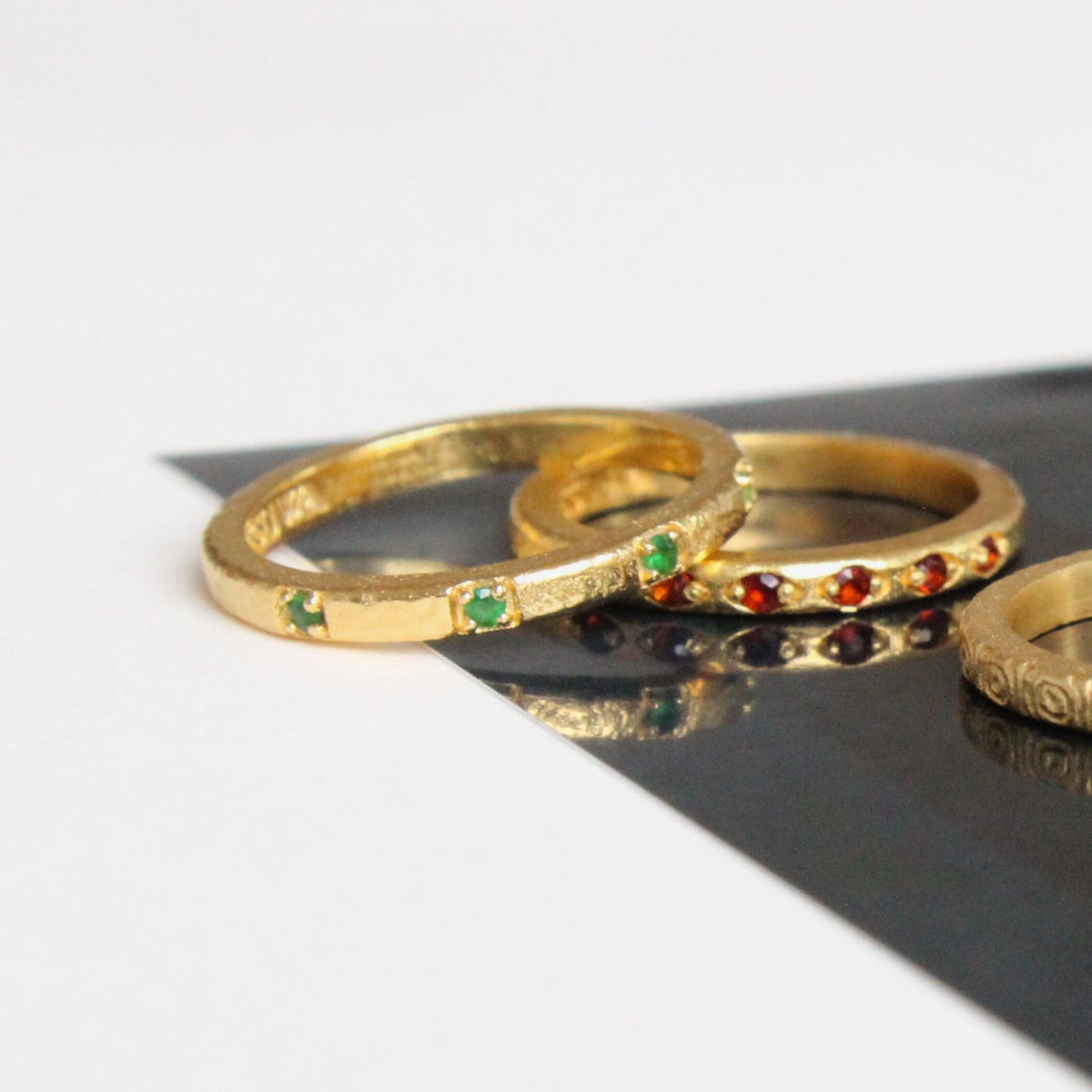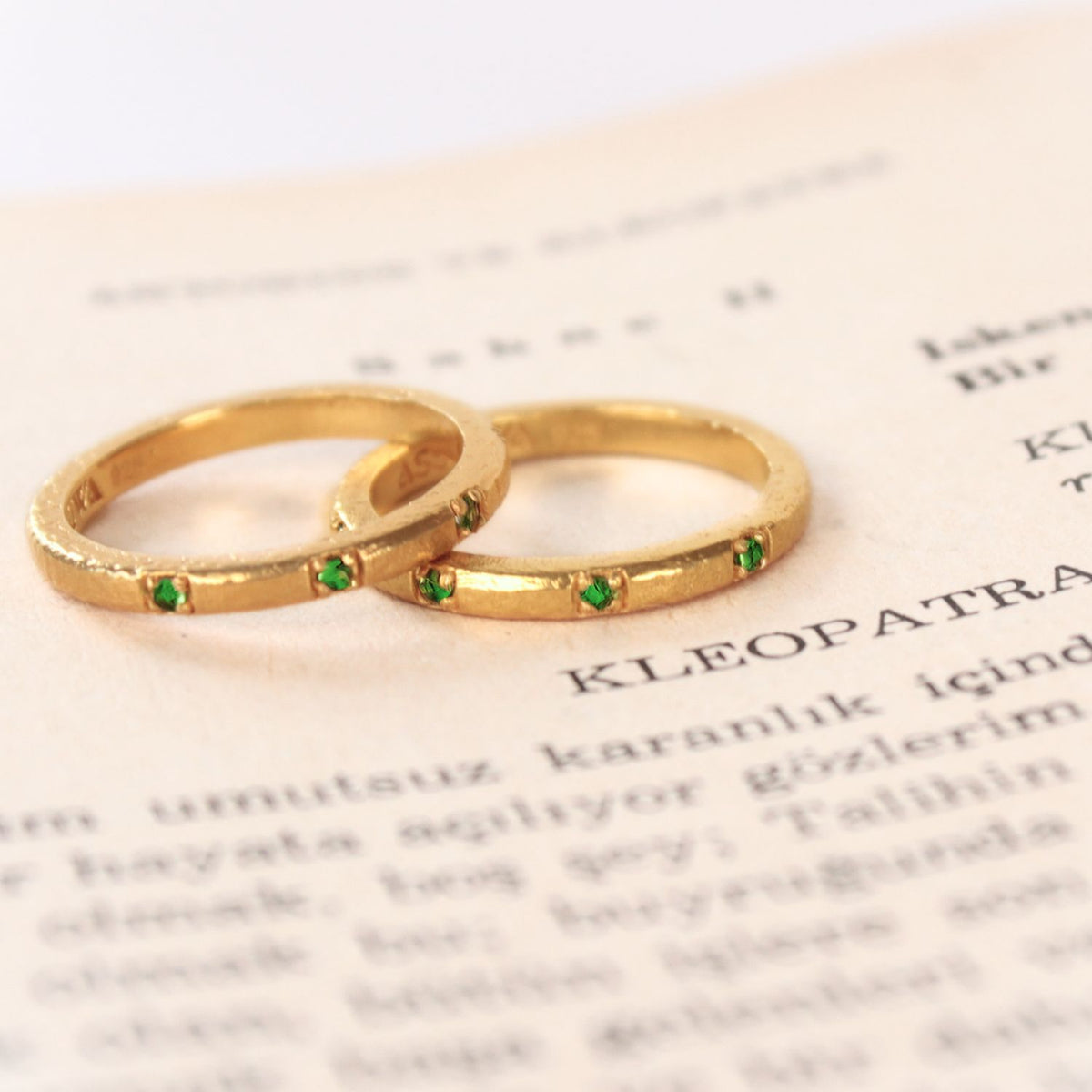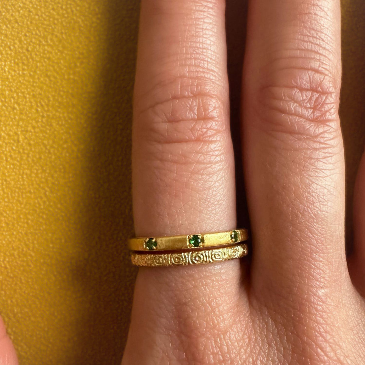 This ring is handcrafted from 925 sterling silver and finished with a thick layer of 18k gold micron plating. It is set with a tsavorite gemstone.