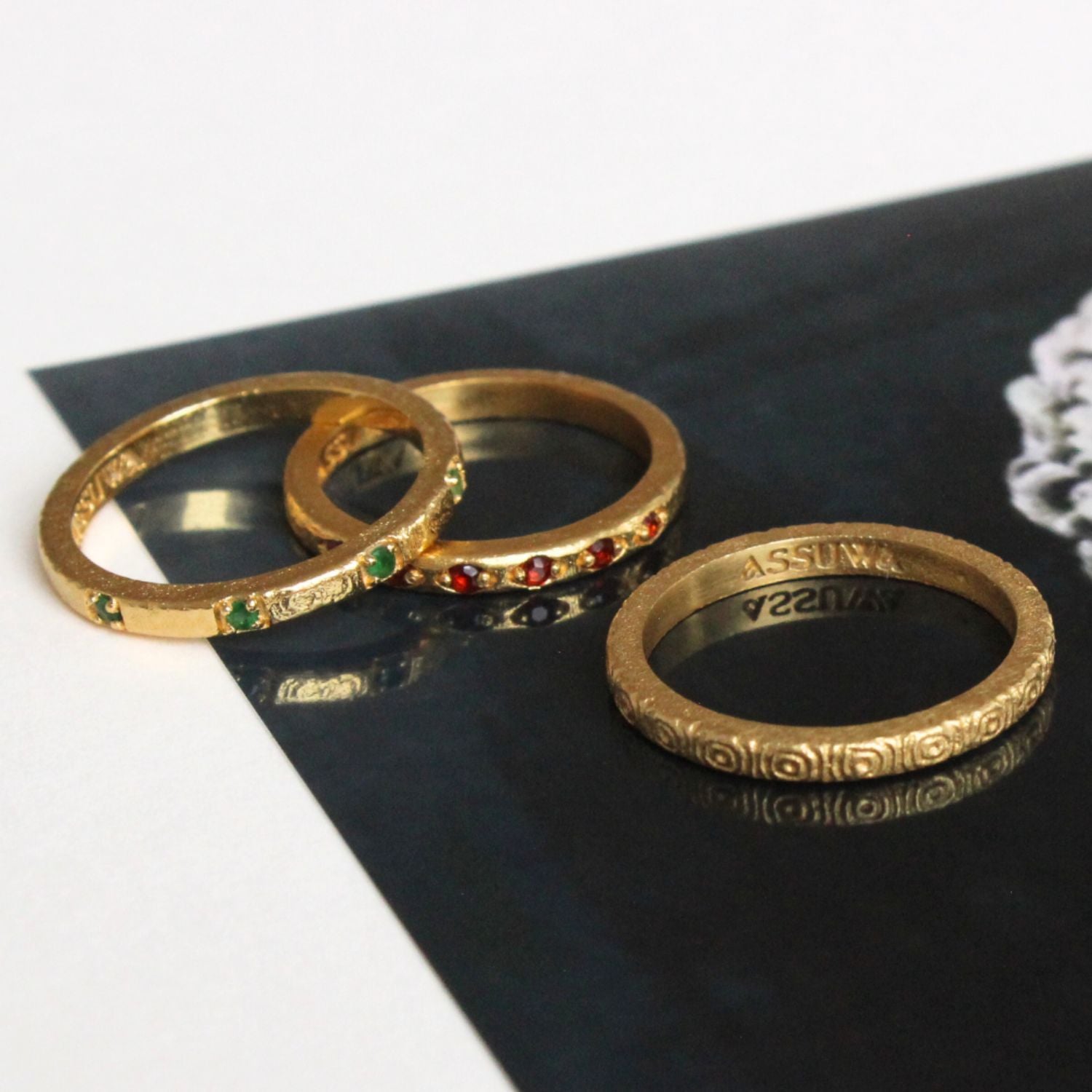 The Cleopatra Tsavorite Ring by Assuwa is a stunning and meaningful piece inspired by the powerful queen. Handcrafted from 925 sterling silver with a thick layer of 18k gold, this ring is designed to be a modern heirloom. It is set with a tsavorite gemstone, a green garnet that symbolizes vitality and strength. This piece invites you to explore your own confidence and allure, making it a timeless and significant accessory.