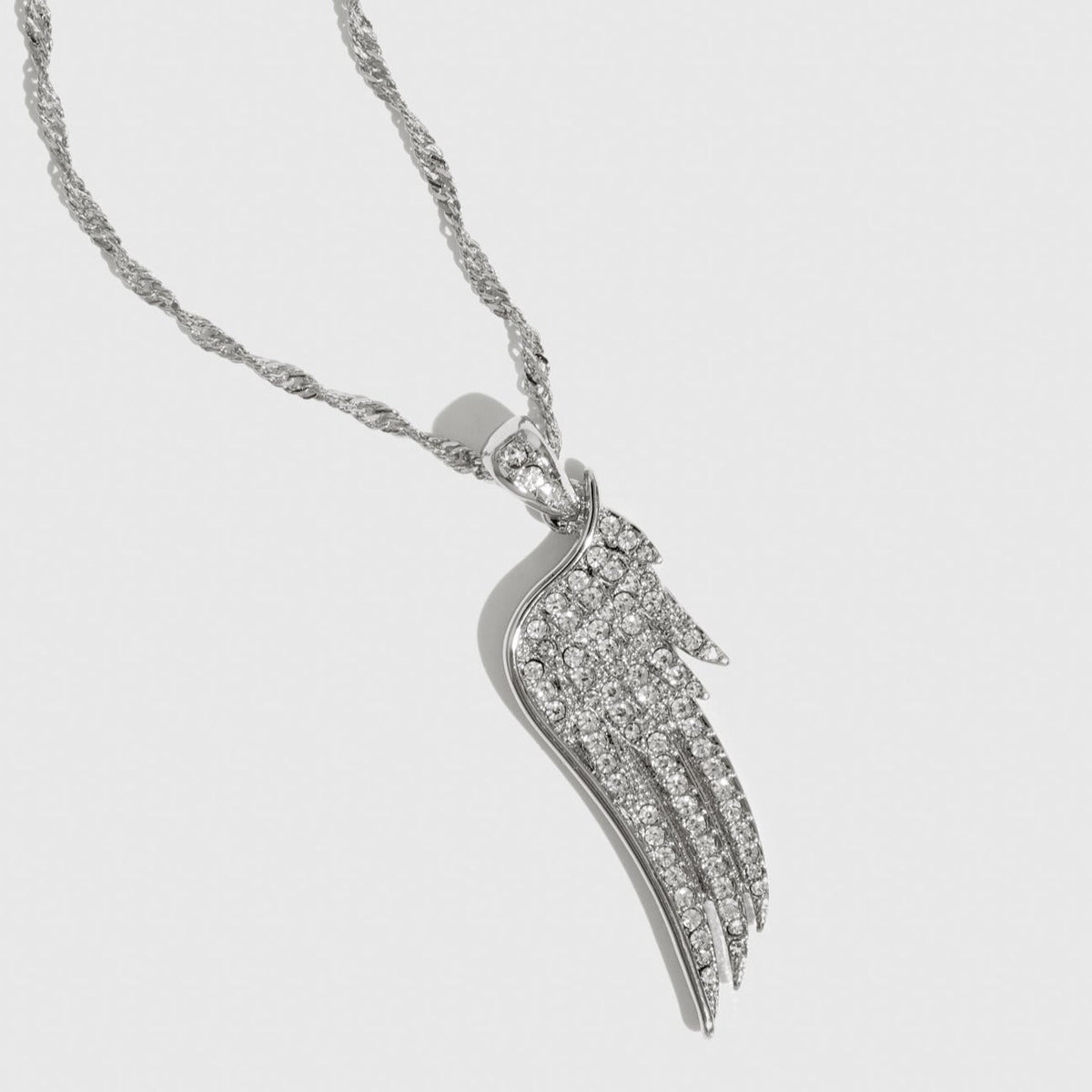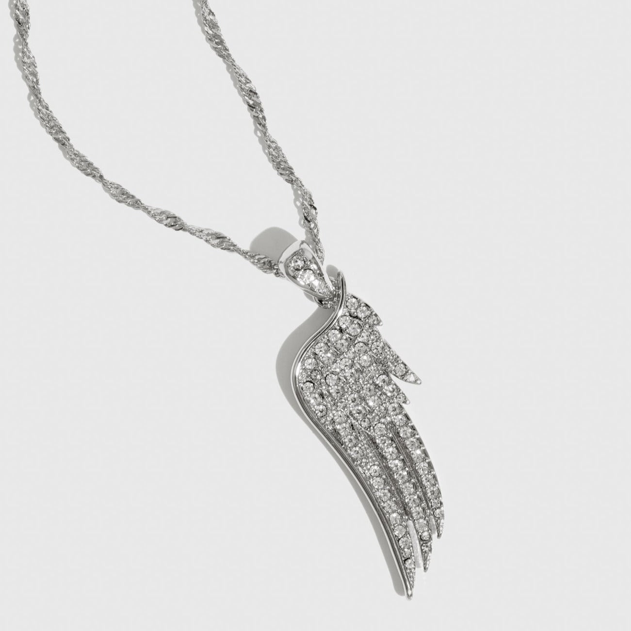 This Angel Wing Pendant Silver by Drae Collection is a beautiful accessory that promotes positive energies. The glistening angel wing pendant, made from 925 Sterling Silver, is plated with an e-coat for extra luster and durability. It symbolizes the protection of guardian angels, making it a meaningful keepsake. Its high-quality, lightweight, and durable design ensures it will last.