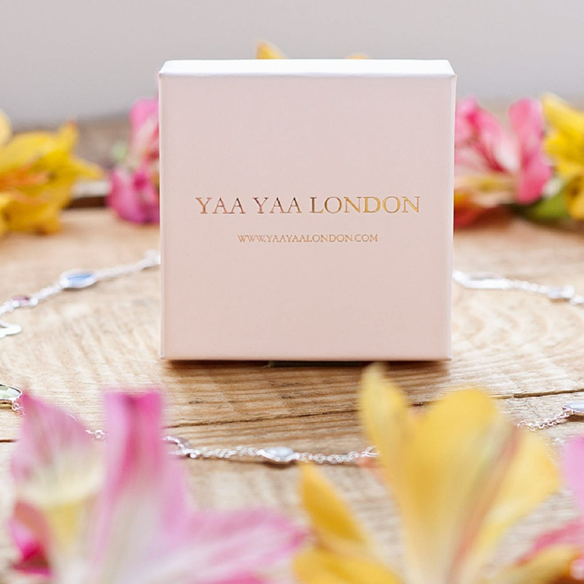 YAA YAA LONDON is a vibrant jewelry brand founded by gemstone designer Yvonne, offering a stunning collection of colorful gemstone pieces for those who know how to wear color well. Specializing in semi-precious gemstones, YAA YAA LONDON presents a full range of earrings, necklaces, bracelets, and cuffs, with standout cocktail and statement rings that are fully adjustable for a perfect fit. Inspired by her Ghanaian roots and passion for style, Yvonne's designs are handmade by a team of artisans, blending bold color with timeless elegance.
