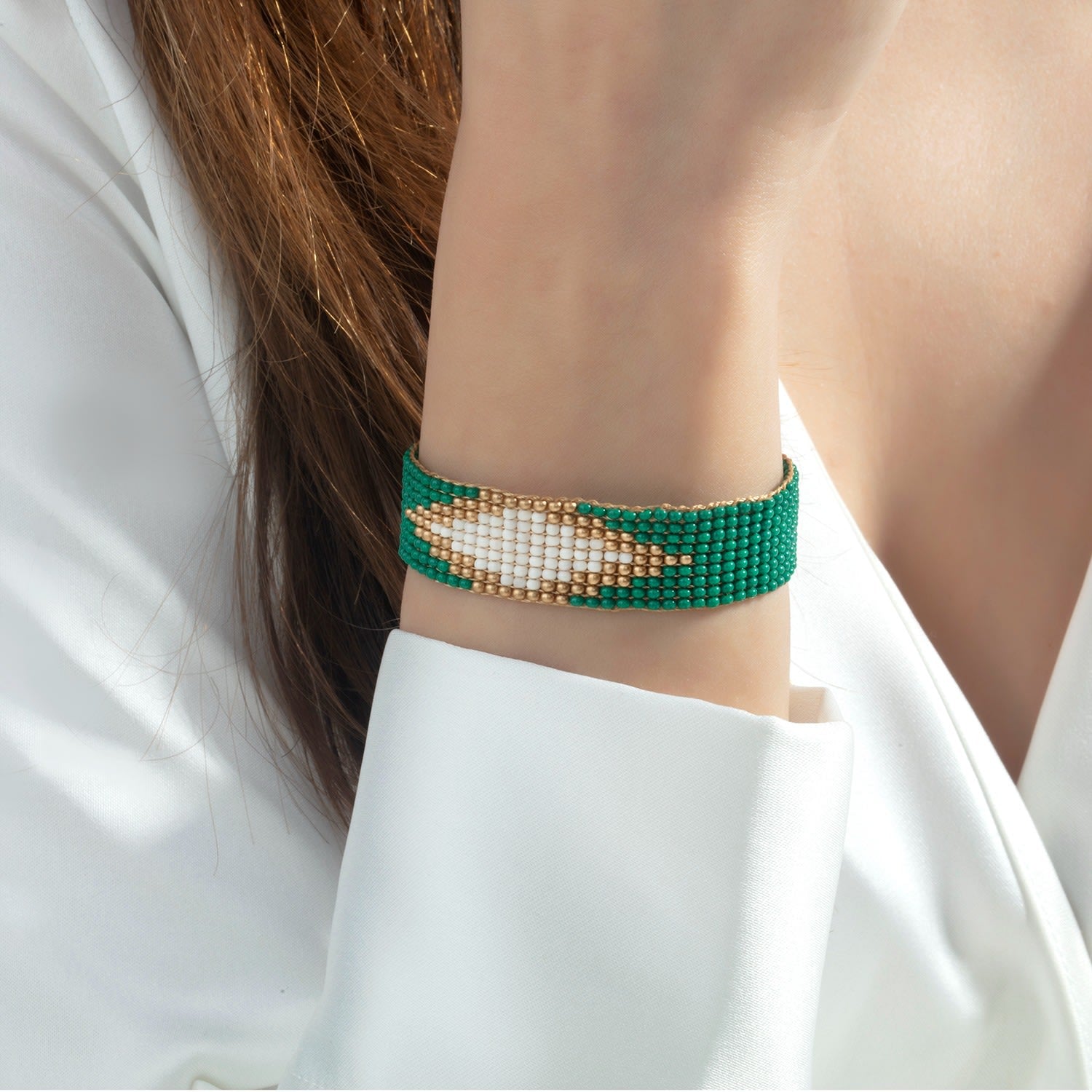 This Isabella Beaded Bracelet by Milou Jewelry is a vibrant and comfortable accessory. Handwoven with tiny, high-quality glass beads, the result is a light and smooth bracelet that's incredibly comfortable to wear. The beautiful green color adds a touch of refreshing elegance, making it a perfect piece for adding a pop of color to your daily style.
